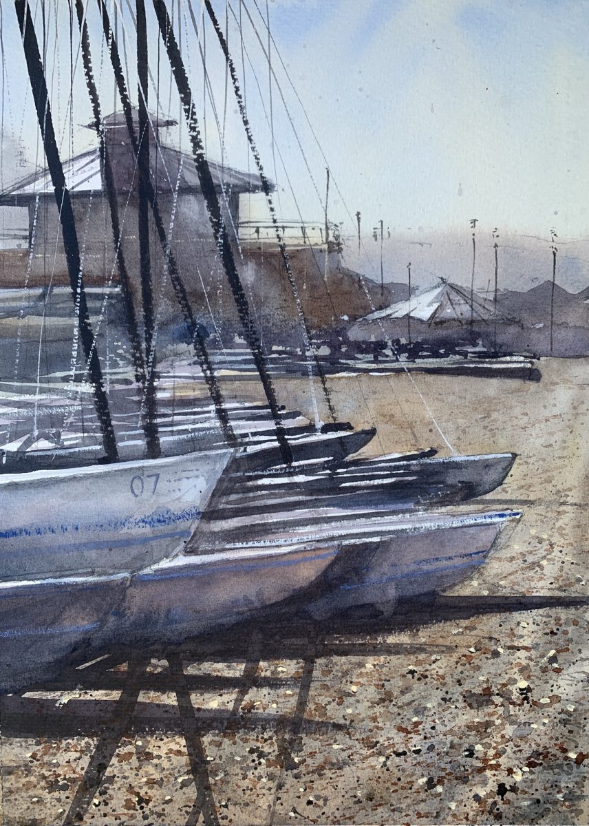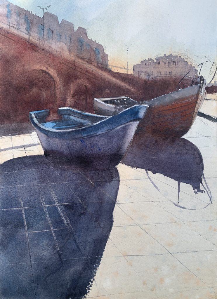 I was painting again during the afternoon of the final day on Sunday. It was another fine and busy day and I had a distinct ‘end of term’ feeling which made me a little giddy! Here’s my effort from the afternoon – a view of Brighton seafront, just outside the wonderful Fishing Museum:
