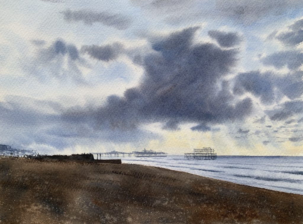 Because the paper was so wet, it allowed me to spend a lot more time working on the sky than would otherwise have been the case. It did still require a lot of concentration to manage the moisture in the paper, and the intensity of the paint (knowing that with so much moisture on the paper, it would dry a lot lighter) but it was great fun!