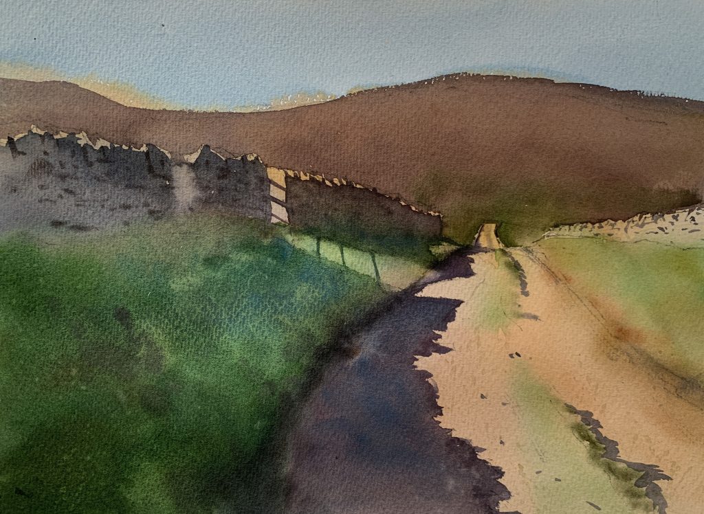 Although the shadow on the road here is too heavy, other areas are much more successful and overall, there’s a good sense of depth to it. I should also point out that this painting was done quite late at night under an electric light and I think that did play a part in my colour balances! (I might have a little more to say on this next week!)