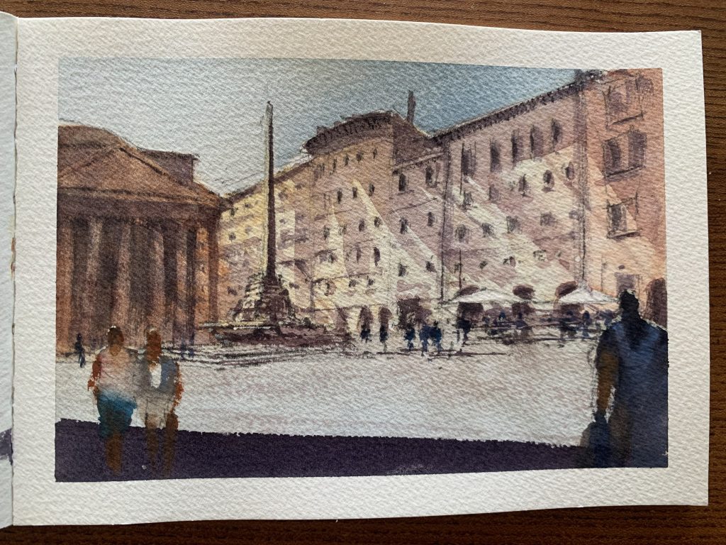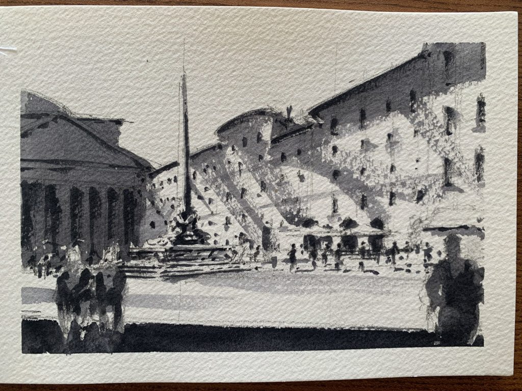 I really enjoyed this study and thought it was quite successful too. Overall, I thought it was perhaps a little too cool, and I also thought about pulling out a little further to include the fountain and statue in front of the Pantheon: