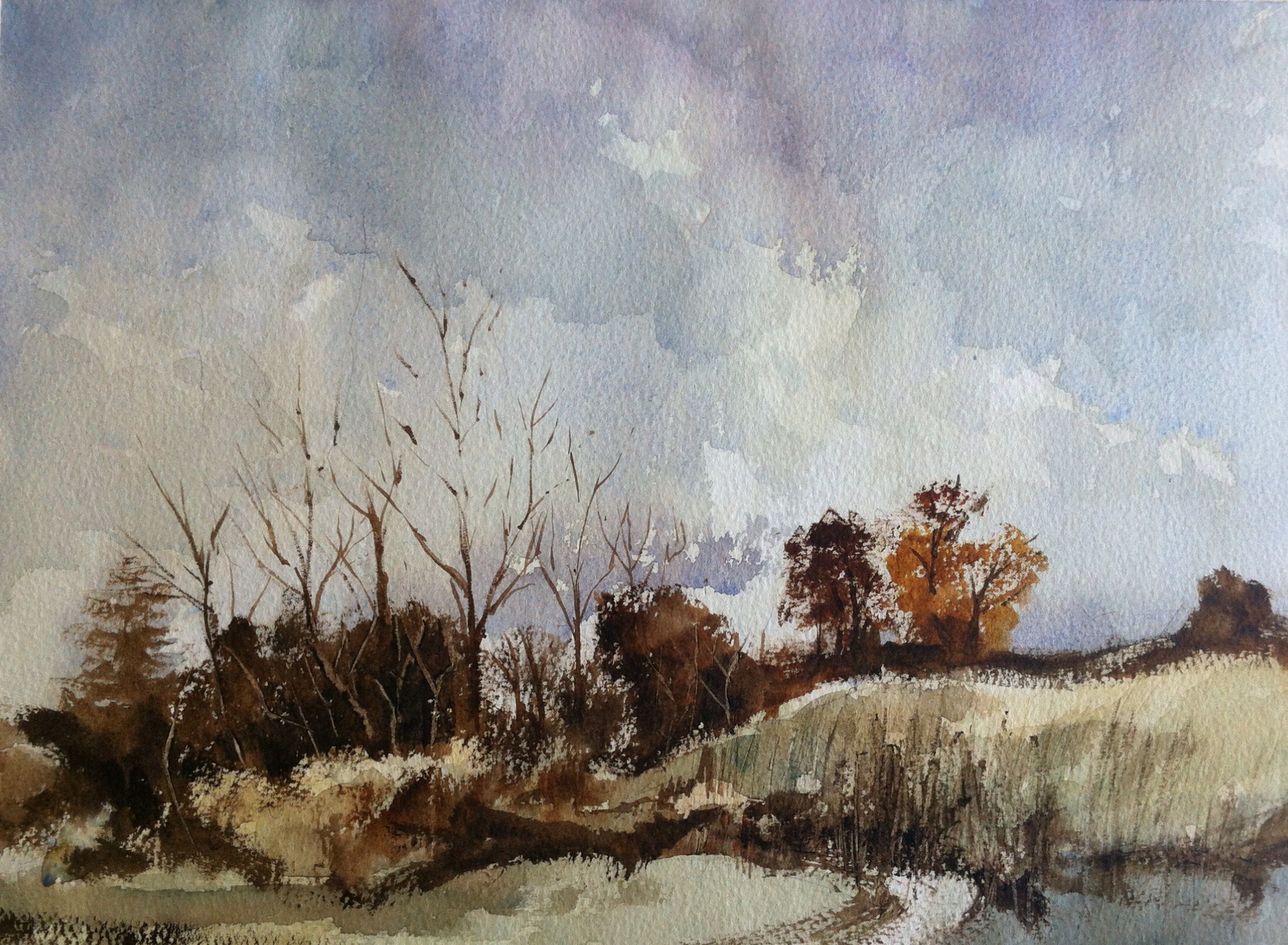 Well my joy of Rowland Hilder is continuing apace! Here’s a couple of takes on two of his many autumnal scenes. Feels weird that as we’re entering what I hope will be a long hot summer, I’m feeling drawn to painting only autumnal scenes. I think this comes down to the palette more than anything – I much prefer these earthier tones to the bright lush (and often too green for my taste) summer views. As usual too, I much prefer Hilder’s loose and and lively approach to his sketches than the more formal, finished works.