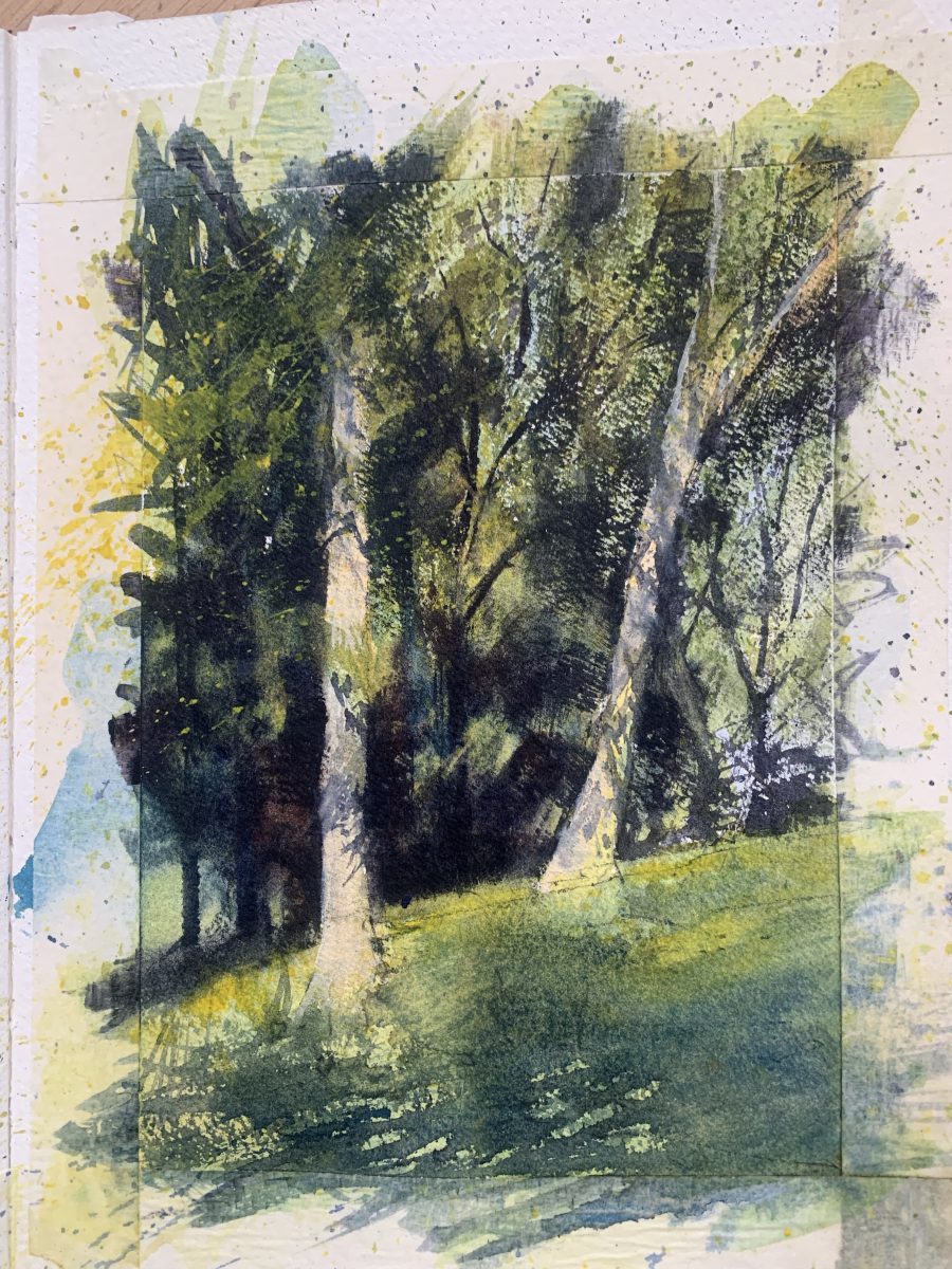These are painted in my A4 sketchbook and I’ve masked each one off to about A5 in size. I’ll probably share them again once the tapes been removed and a mount placed over them but that’ll have to wait for another day!