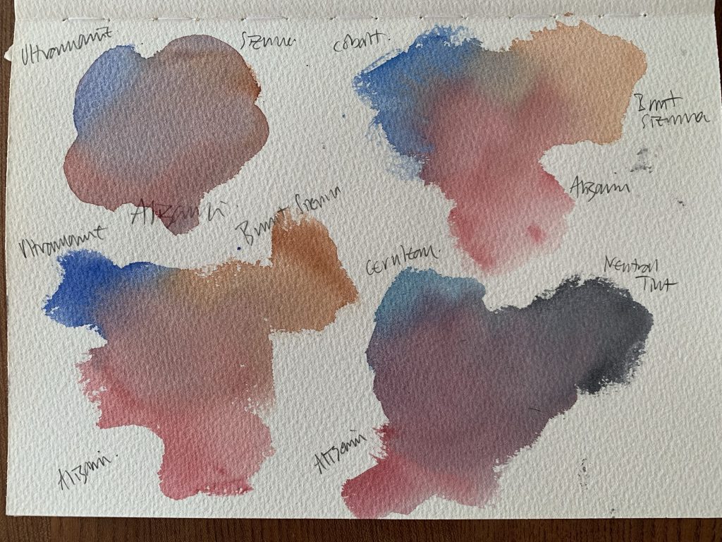 I’d ordered the colours that form the core of my palette: French ultramarine; cobalt blue; cerulean blue; yellow ochre; alizarin crimson; burnt sienna and neutral tint: