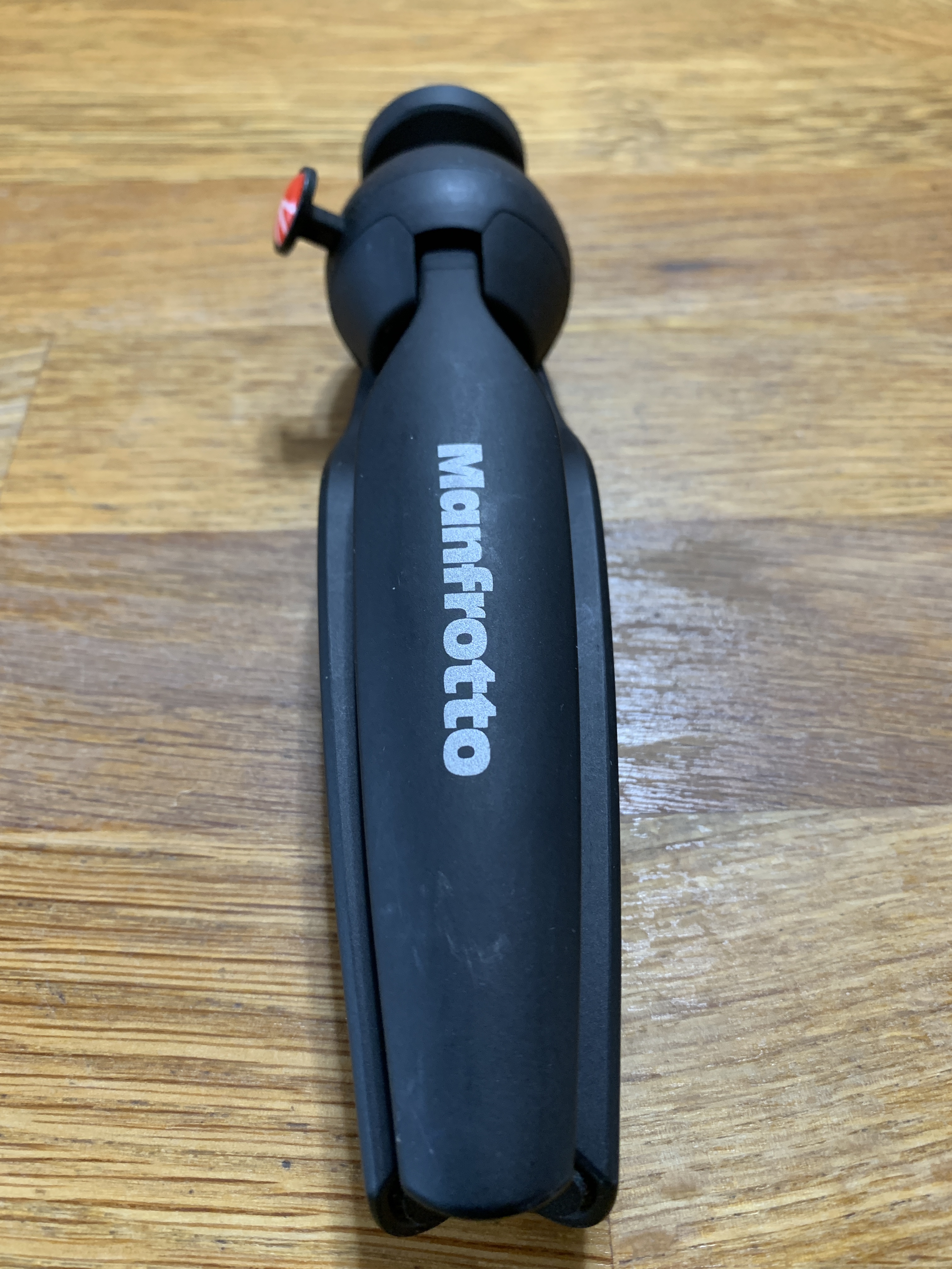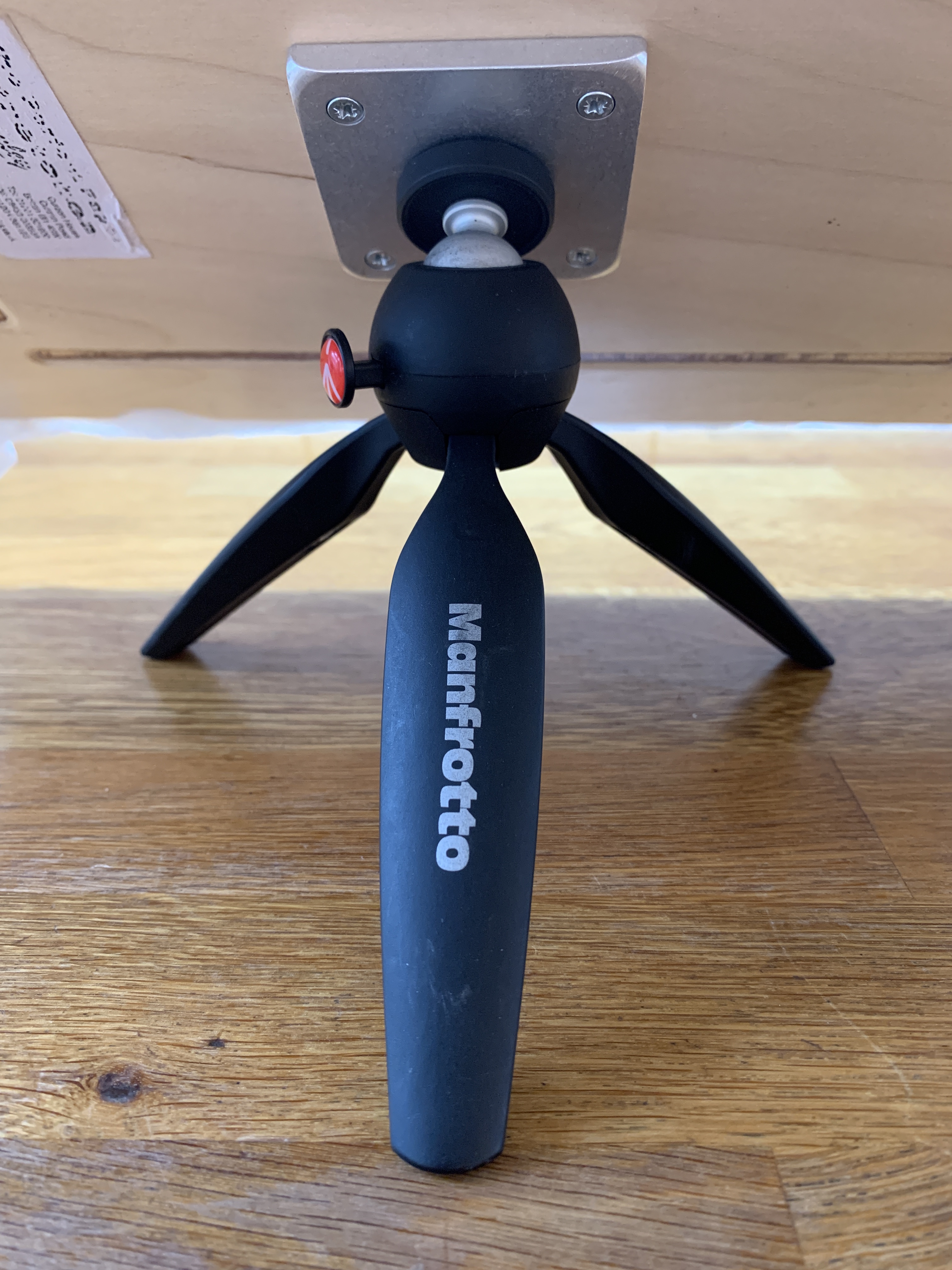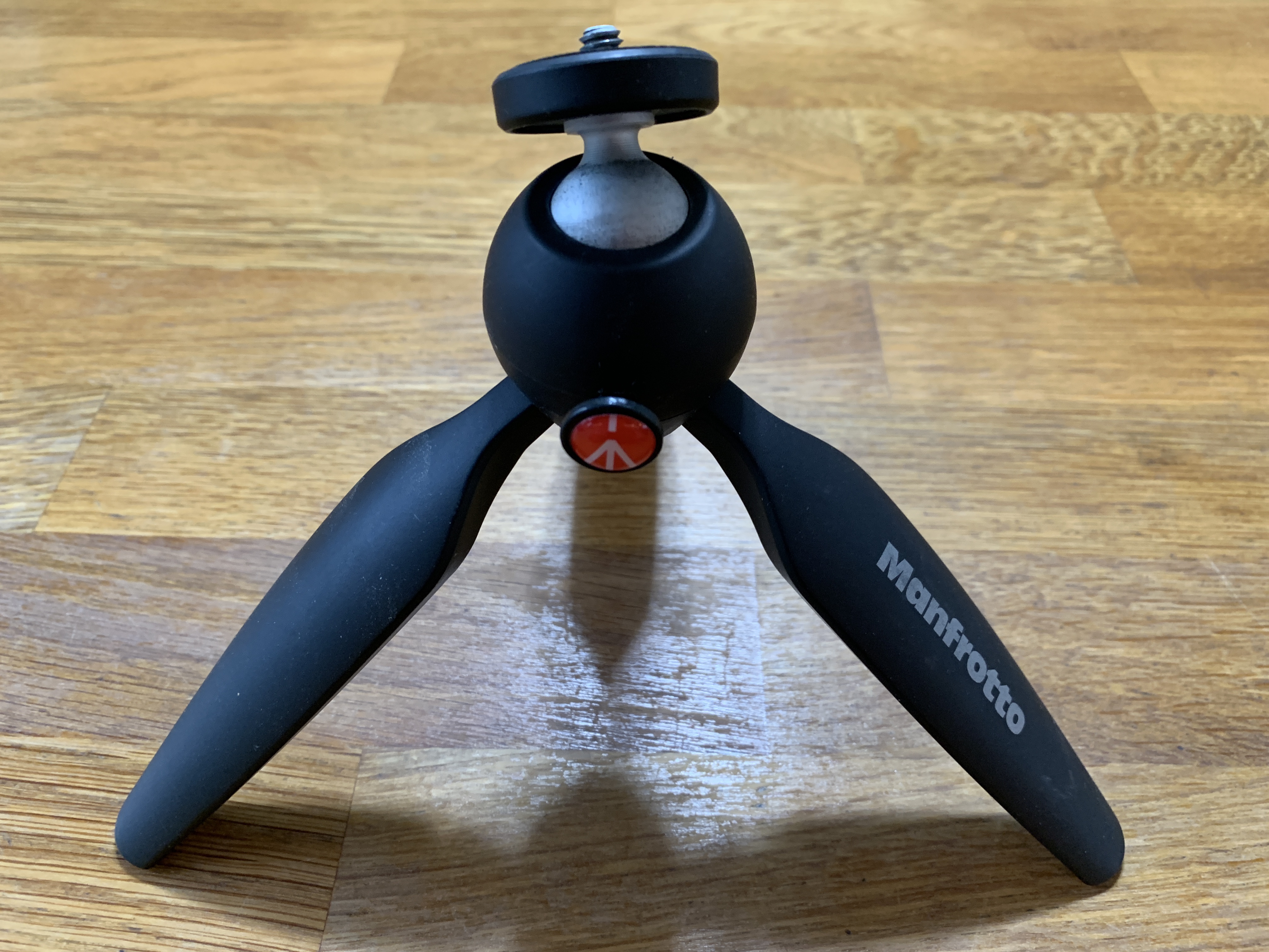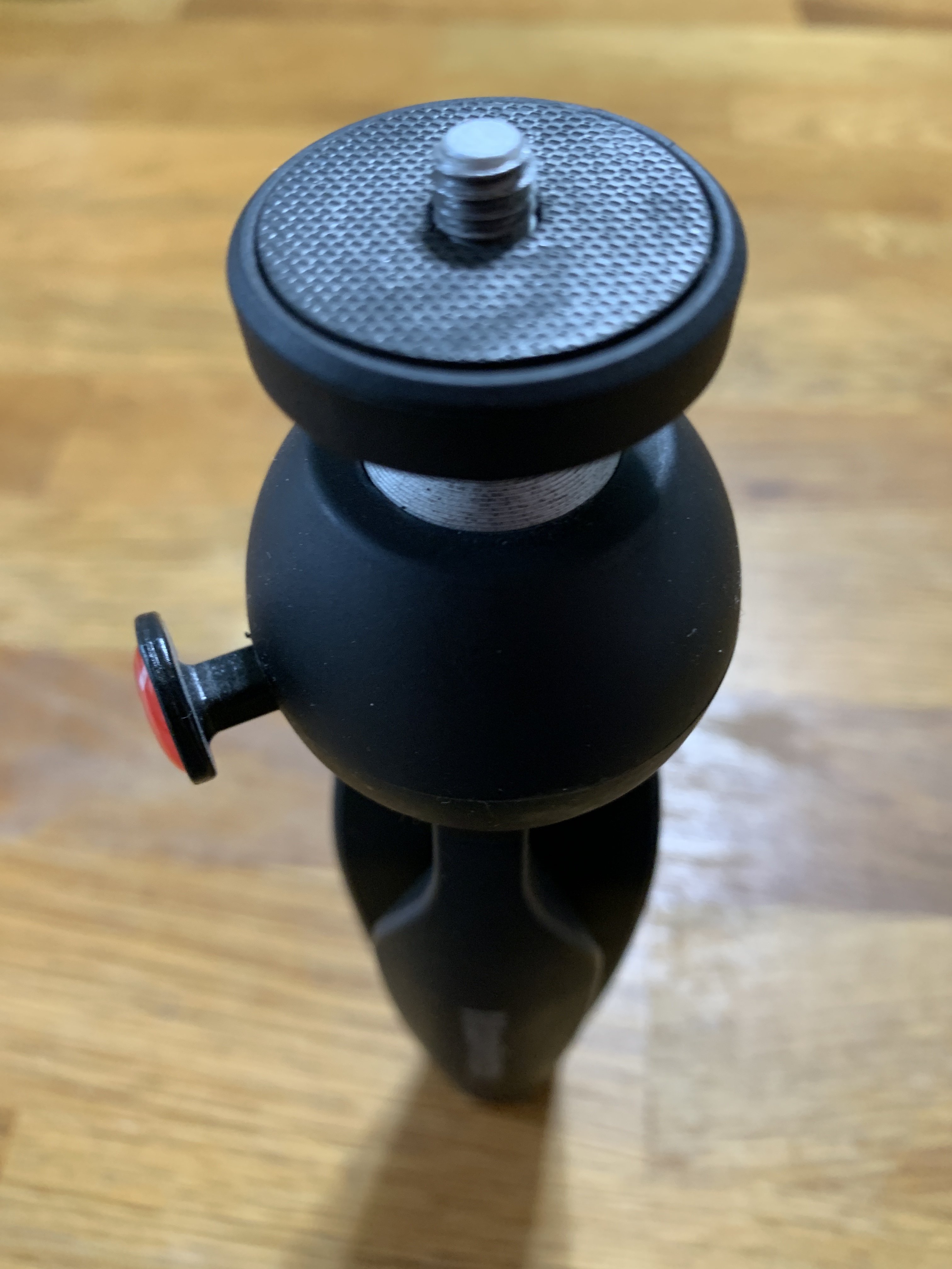 Manfrotto pixi mini with lggs closed, it makes a nice hand grip ready to paint showing the Ken Bromley tripod adaptor pressing the red button allows you to move the angle Close up