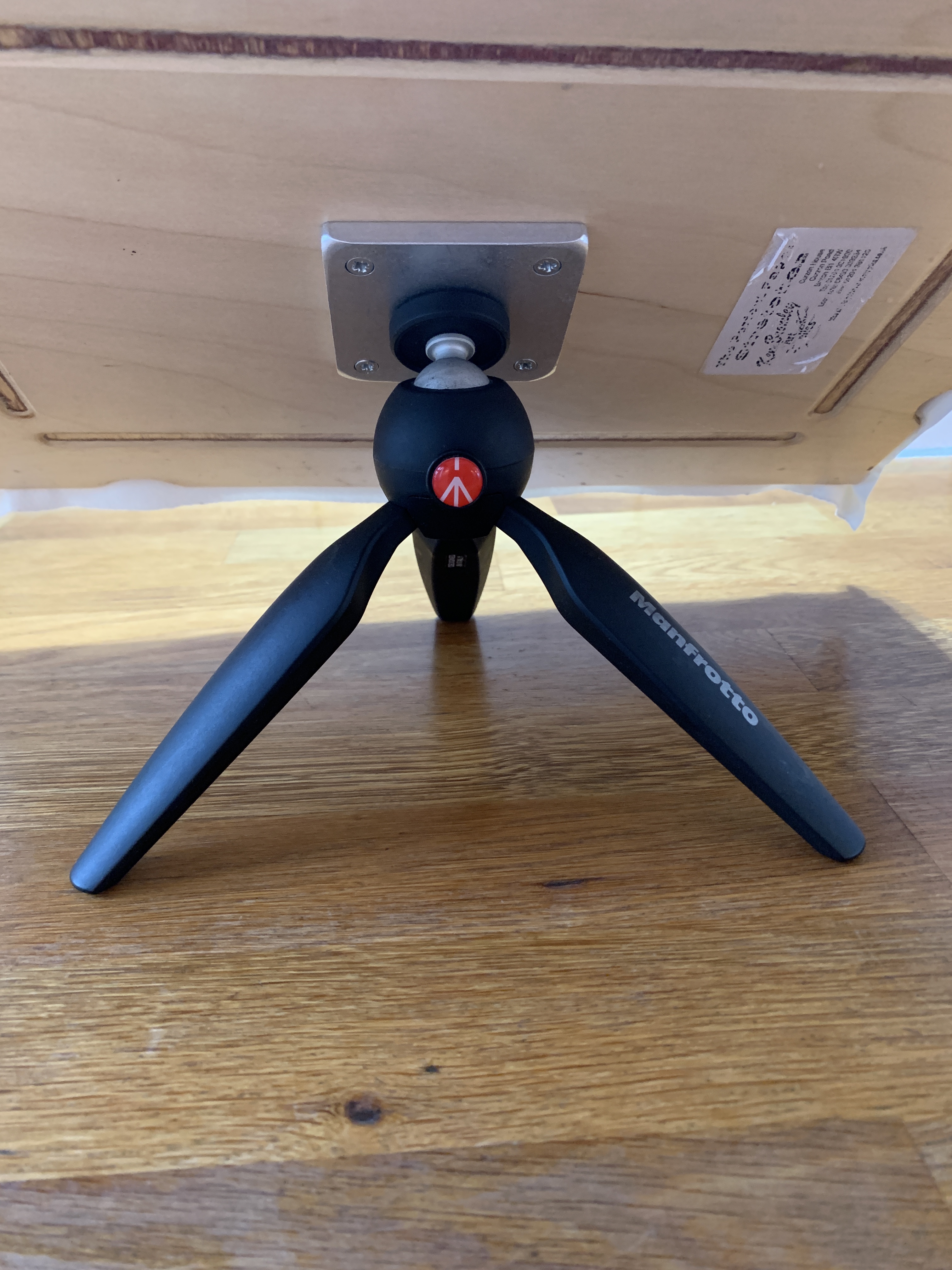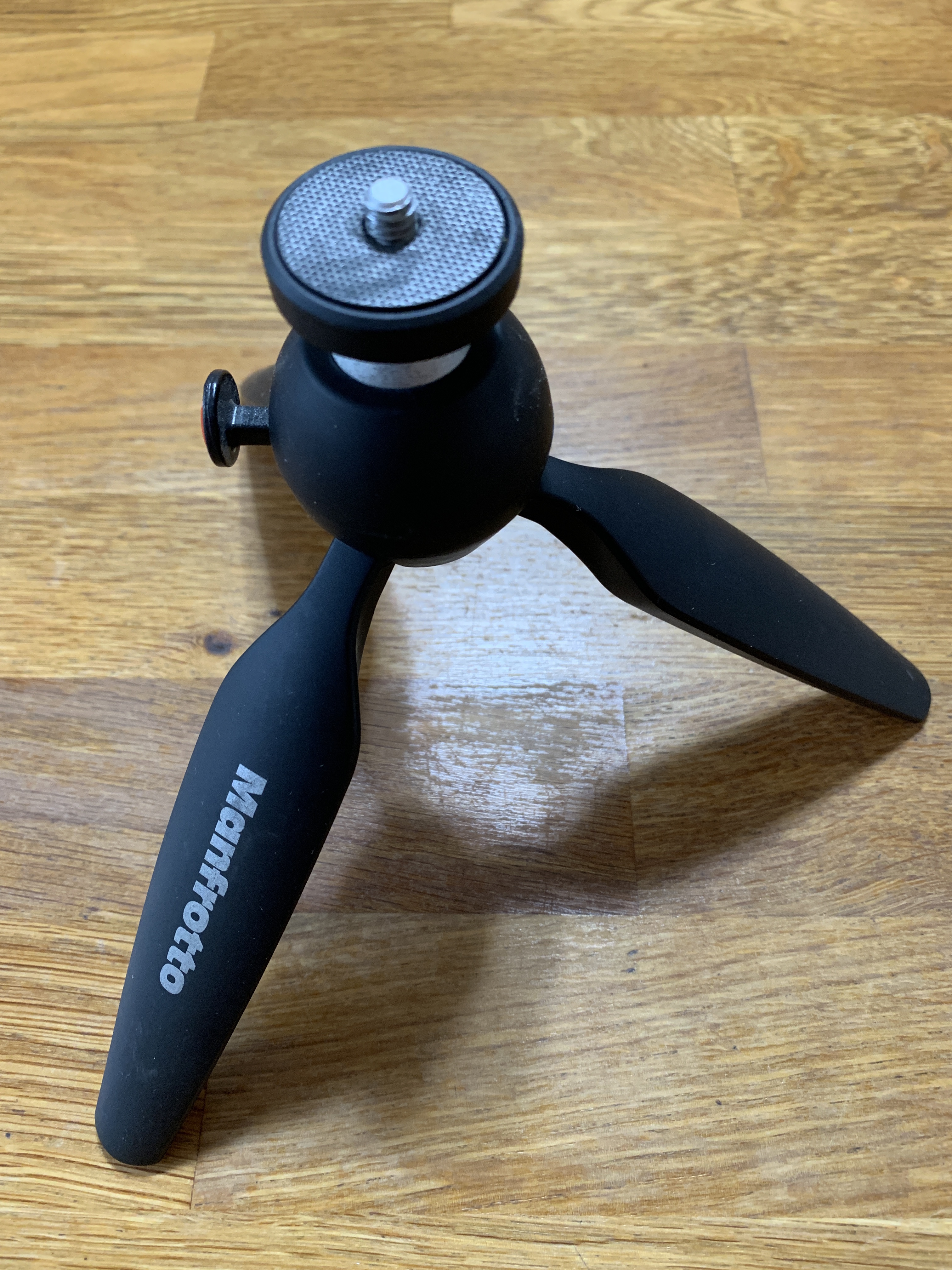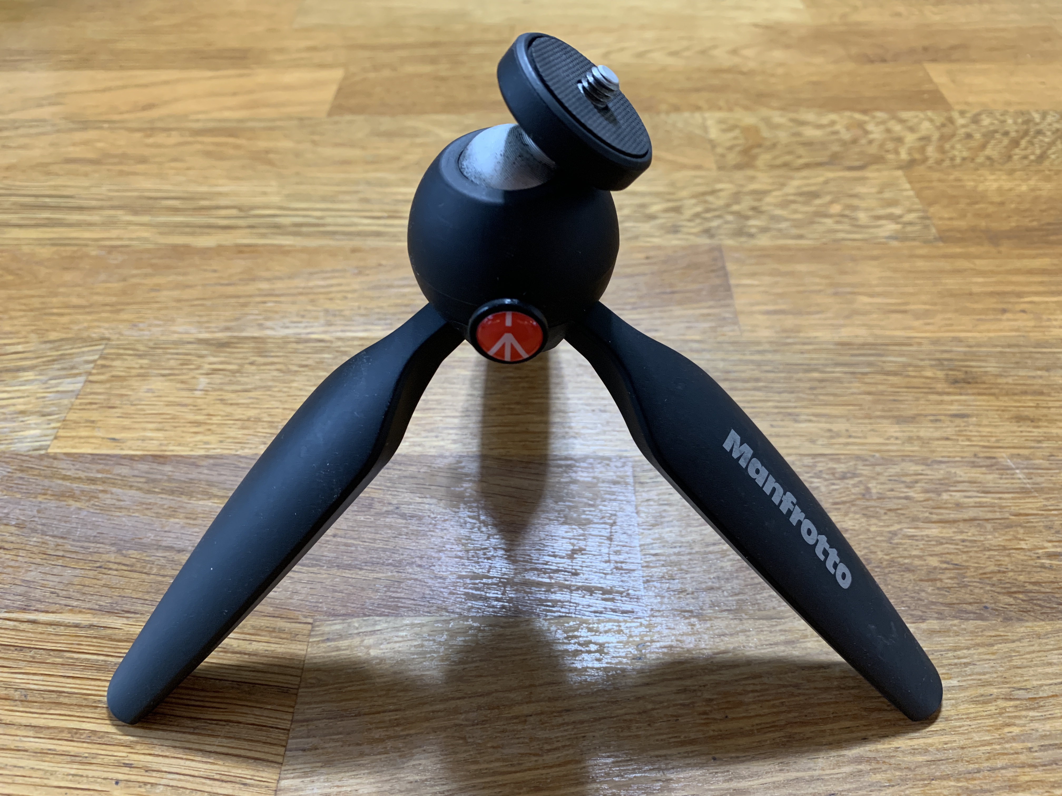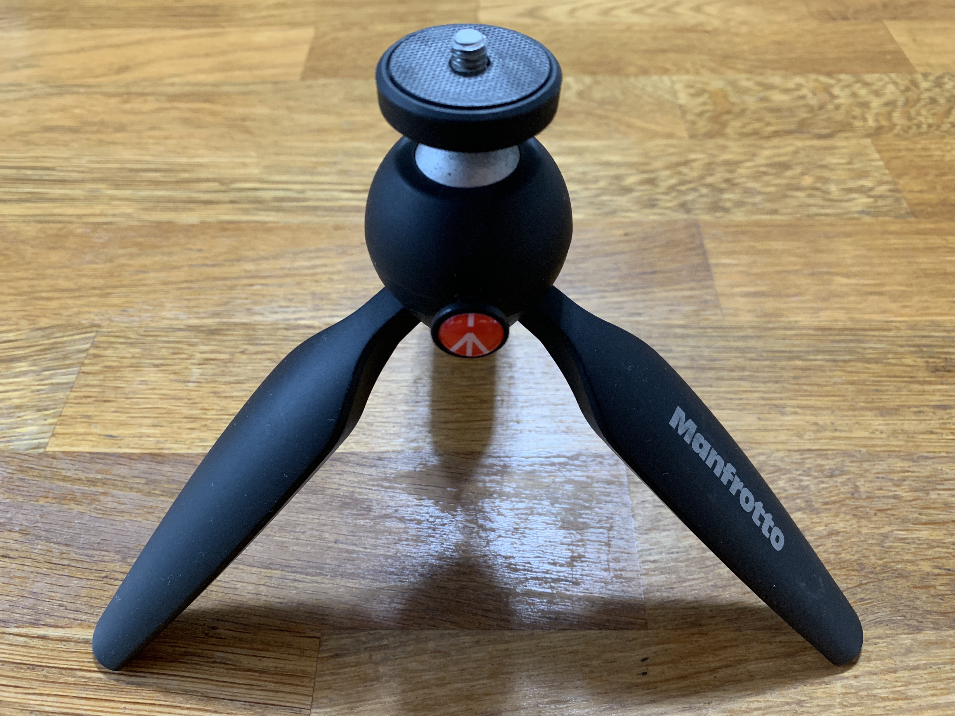 Manfrotto pixi mini with lggs closed, it makes a nice hand grip ready to paint showing the Ken Bromley tripod adaptor pressing the red button allows you to move the angle Close up