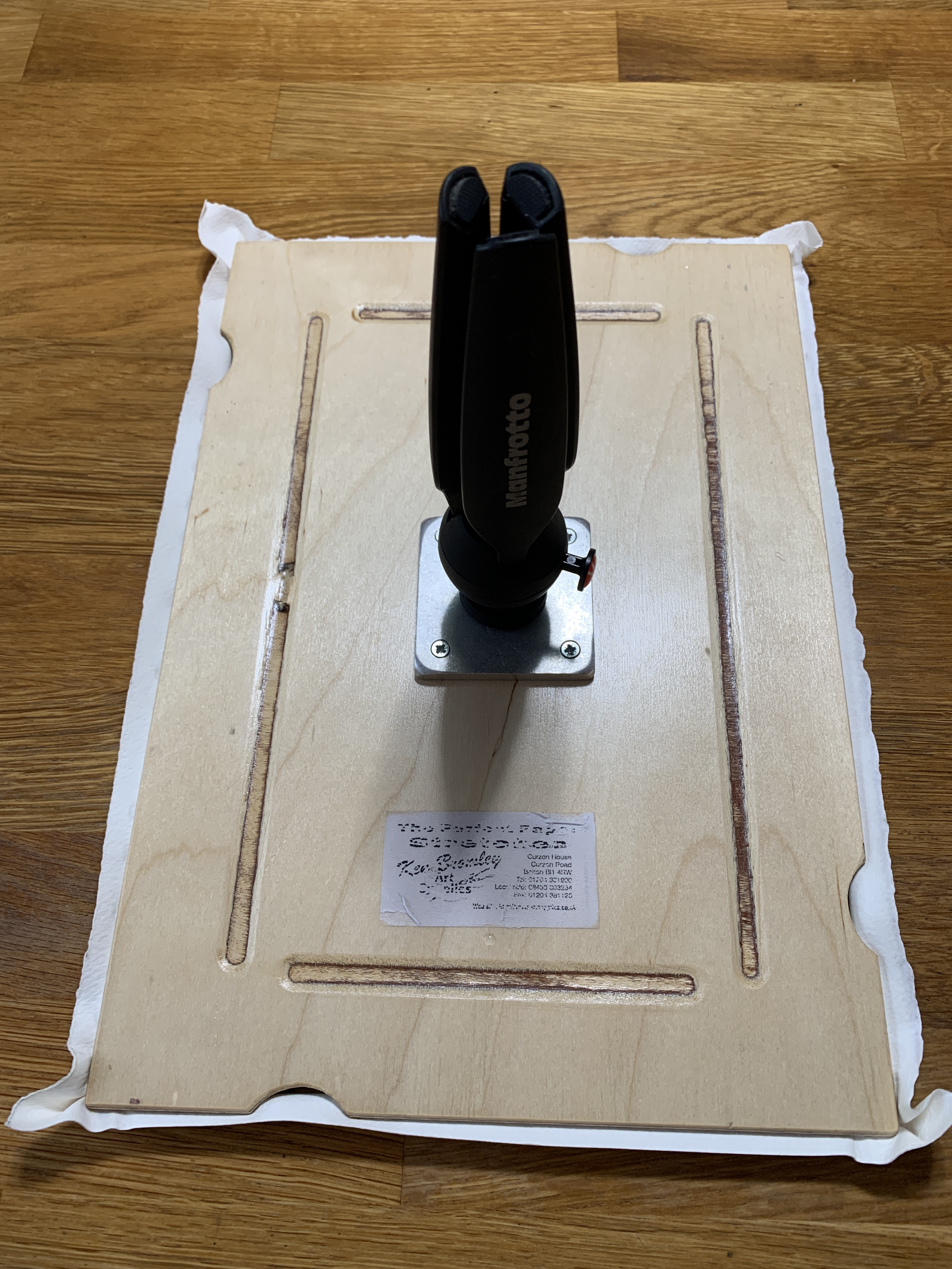 What I didn’t realise at the time is what a great little tripod this makes for quarter and even half sheet boards once you’ve added on a Ken Bromley tripod adaptor to the boards. As at home I paint standing up, this tripod is a nice height for putting on a tabletop or kitchen work surface etc. They’re nicely adjustable so you can tilt and secure the board at a wide range of angles depending on what you require or prefer.
