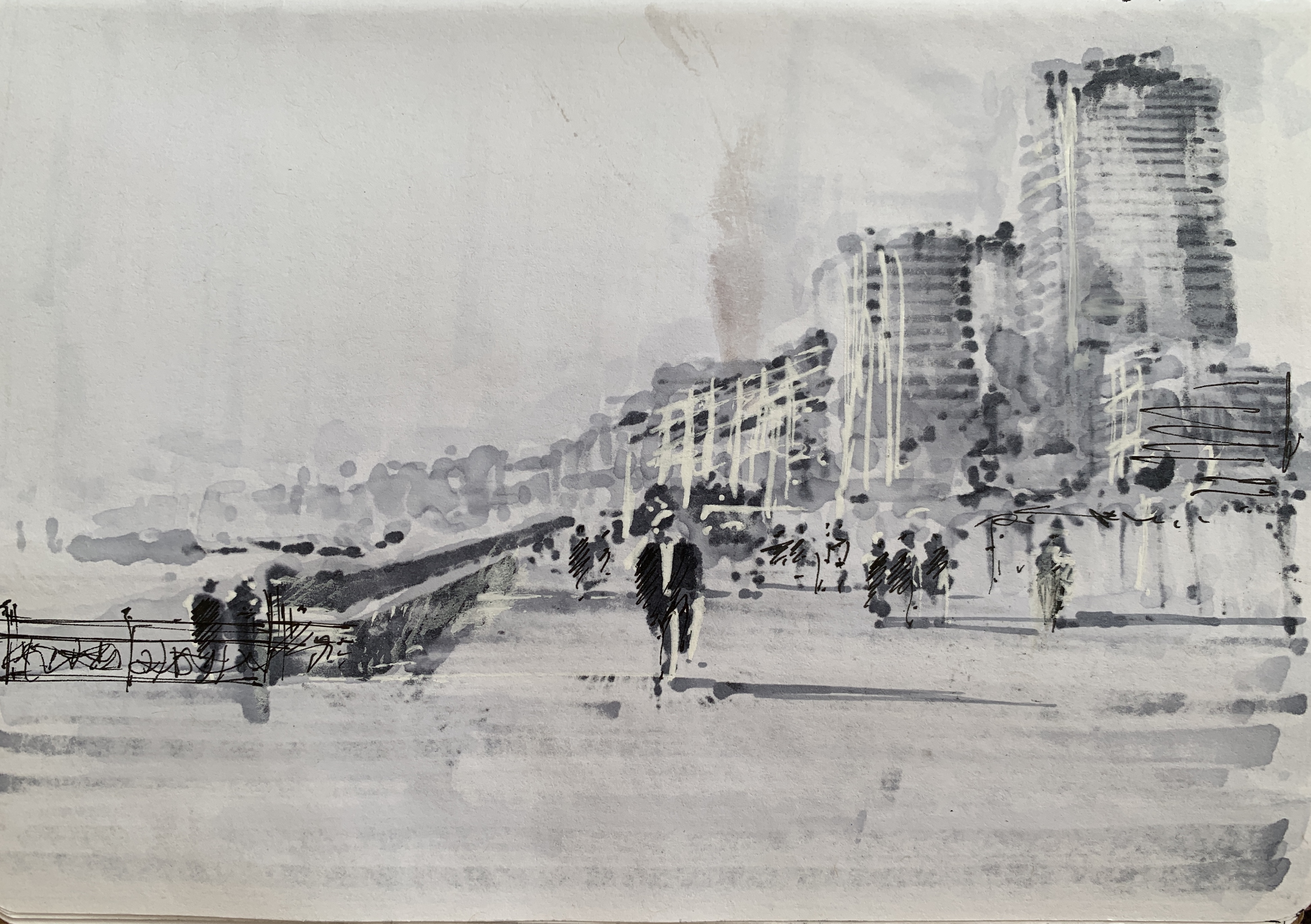 I am looking at your sketches – particularly the one of the Brighton seafront – and wondering about the tools – could you enlighten me as to what exactly you are using.