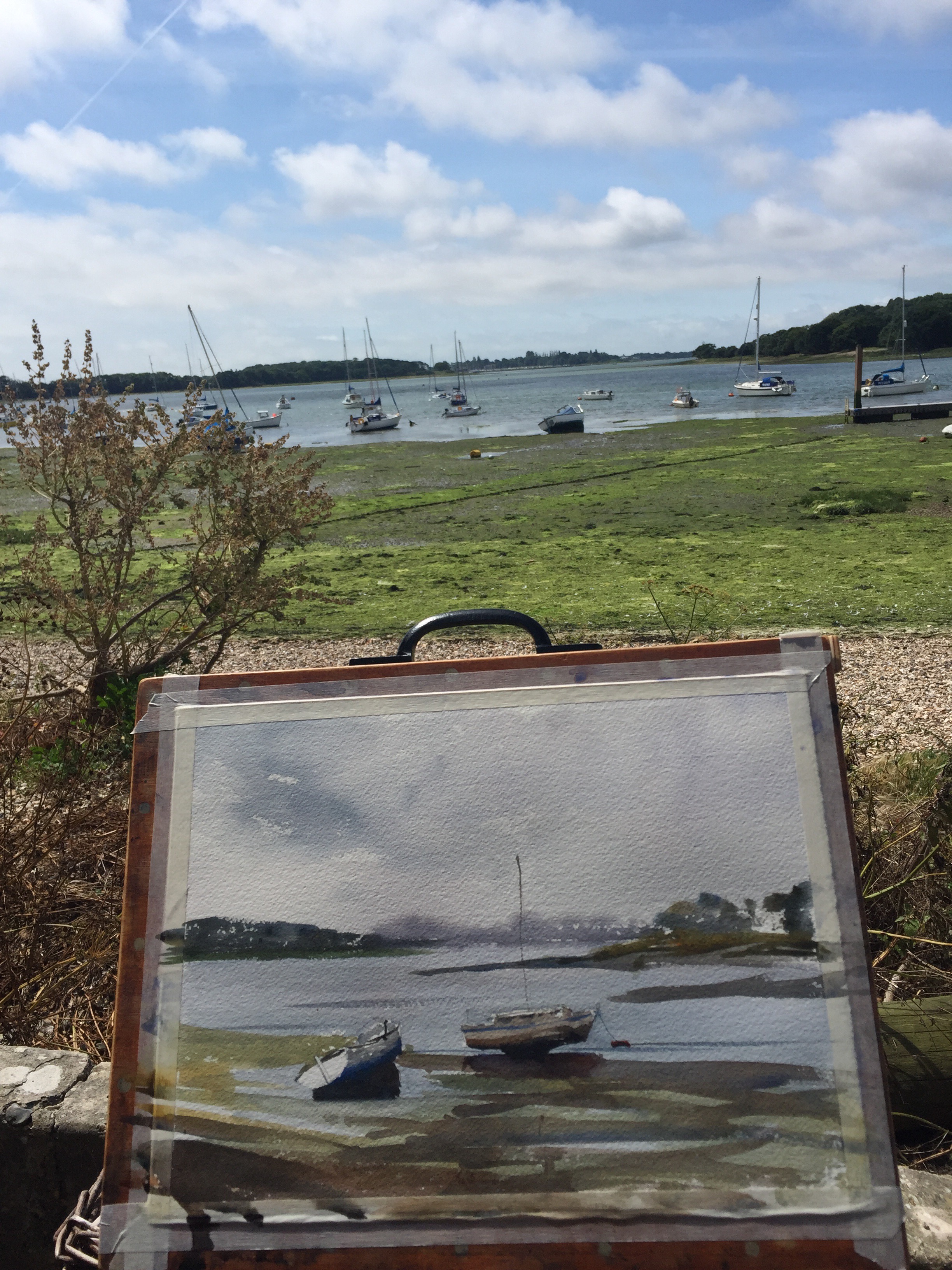 Now there’s a lot about this that I’m not happy with in this – too much in fact to even begin to critique it, but what I do like is how it’s possible to convey glistening mud banks, with very clean transparent applications of watercolour. Armed with this new found enlightenment, I returned to my plein air original: