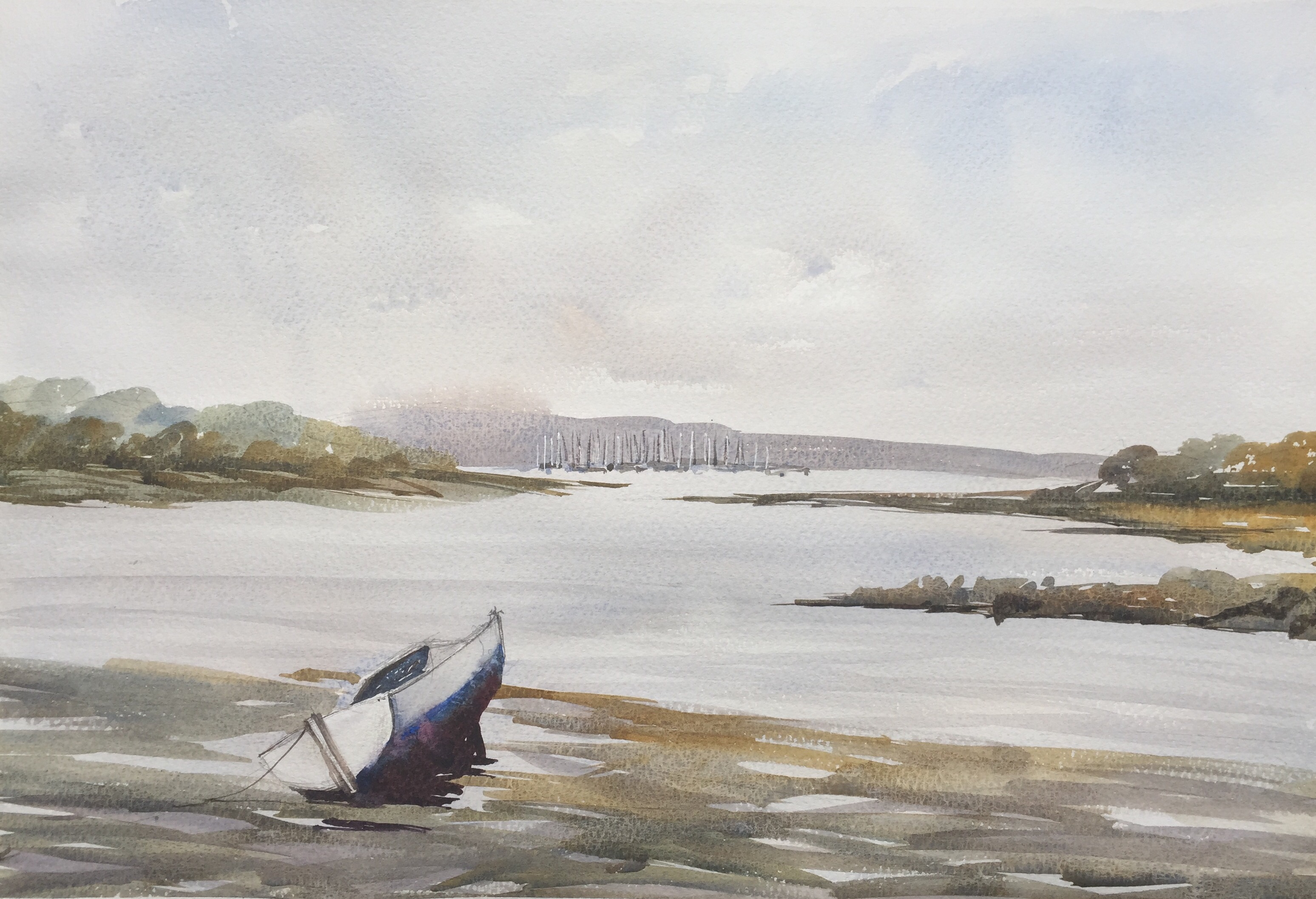 “This is a really loose painting, Ted has captured the wet mud with immense vigour and dash. The main object of interest is the dark blue yacht, which is placed to form a direct contrast with the patch of light water above. Overall, a very exciting picture.”