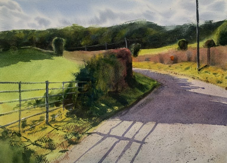 This was quite a quick quarter sheet watercolour painting. The view is from a recent walk in Stanmer Park, just outside Brighton. We’d spent most