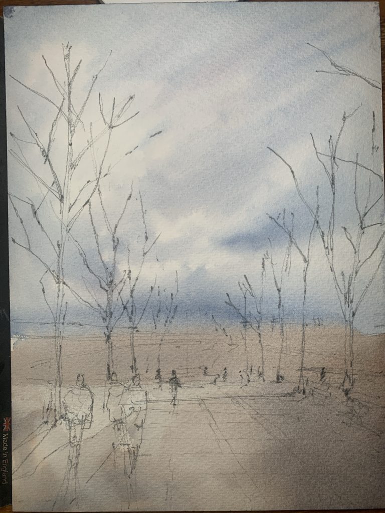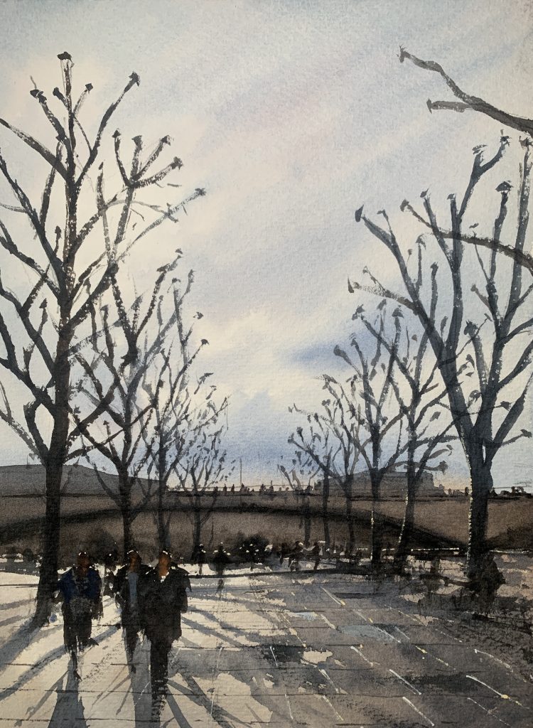A quick one this week! The inspiration for this week’s watercolour painting dates back to January this year, when I was delivering my entry to the Royal Institute for the Society of Watercolour Painting at the Mall Galleries.