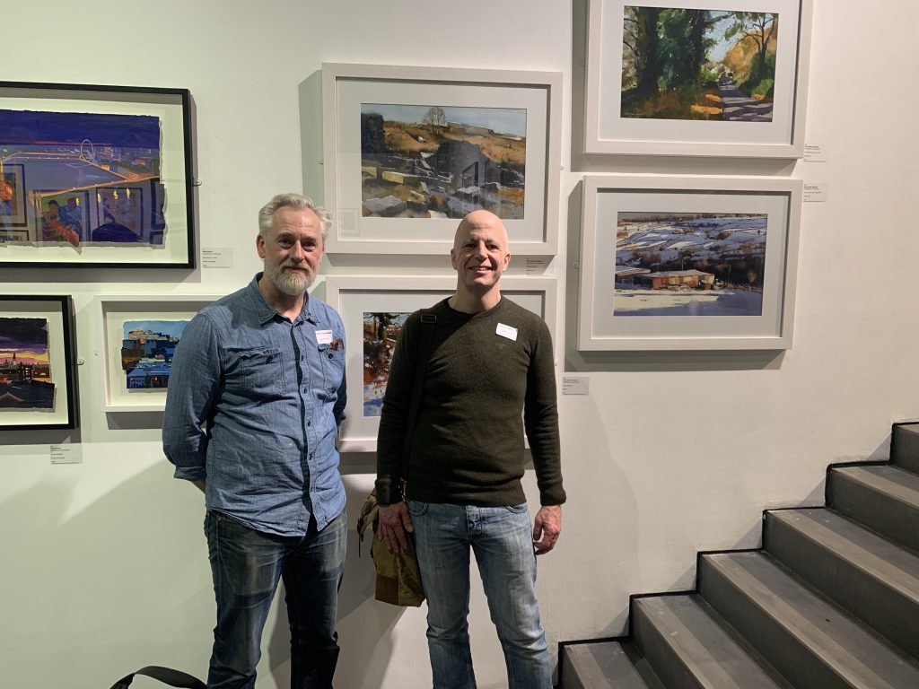 As many of you will know, I’m a great admirer of Paul Talbot-Greaves and a few years ago did a course that he ran on ‘greens in watercolour’. I also had the pleasure of meeting him at the Royal Society of Painters in Watercolour Exhibition earlier this year. Here’s a picture of the two of us in front of a selection of his paintings.