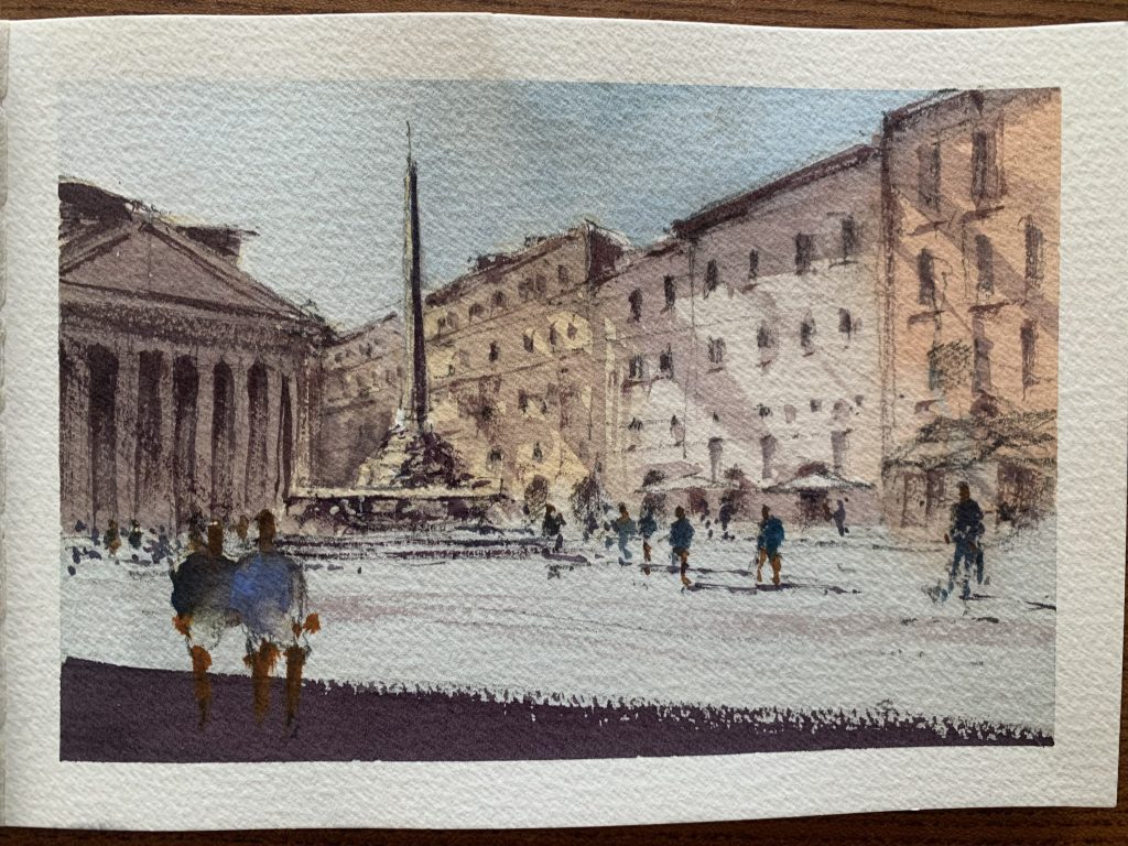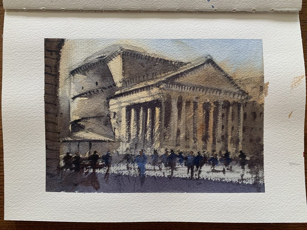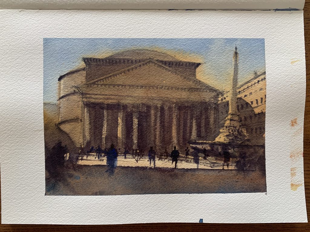 I really enjoyed this study and thought it was quite successful too. Overall, I thought it was perhaps a little too cool, and I also thought about pulling out a little further to include the fountain and statue in front of the Pantheon: