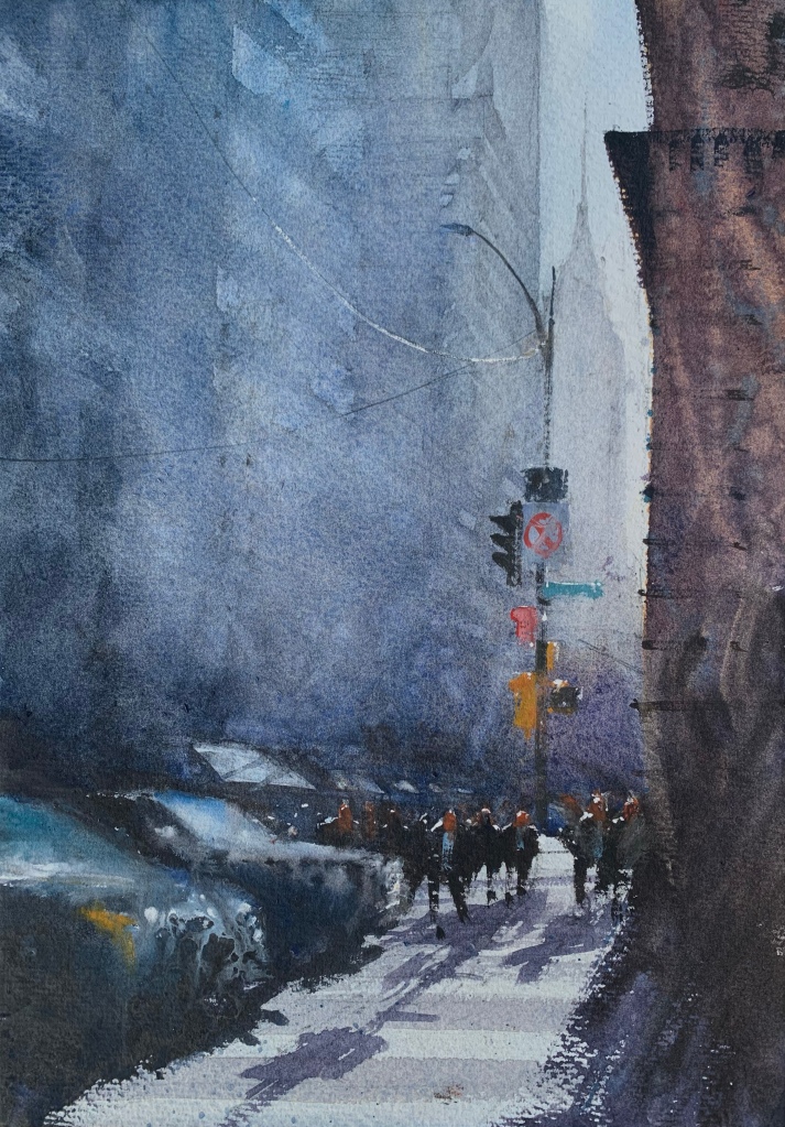 I love trying to capture the atmosphere and energy of a place like New York and it’s a subject I return to often. What I particularly like about this painting is the simplification of the subject and the freedom with which the paint’s been applied. I tried to create a balance between the cooler left-hand side of the painting with the warmer tones of the foreground building on the right-hand side. It always feels good when I capture a view that I could imagine myself stepping right in to!