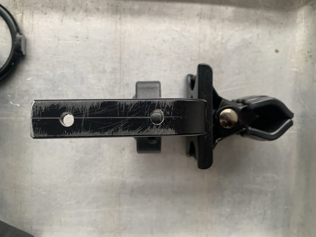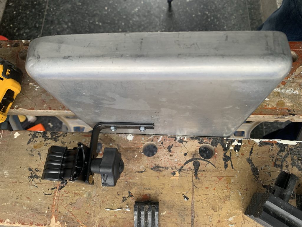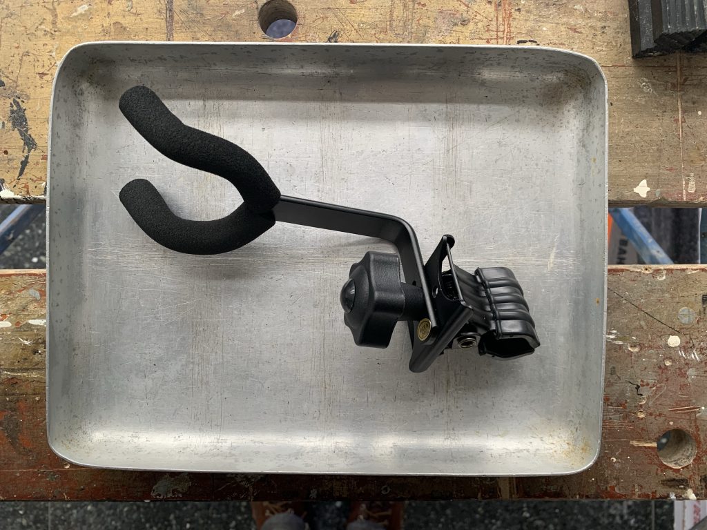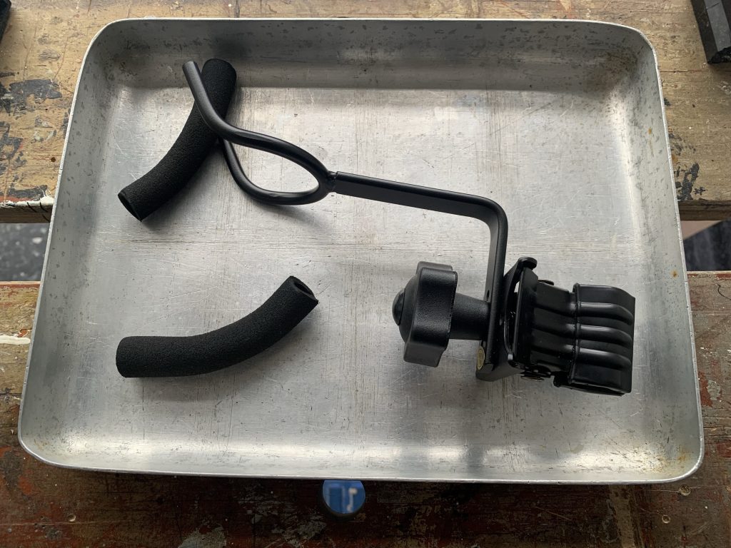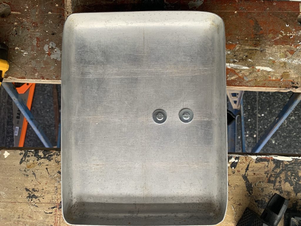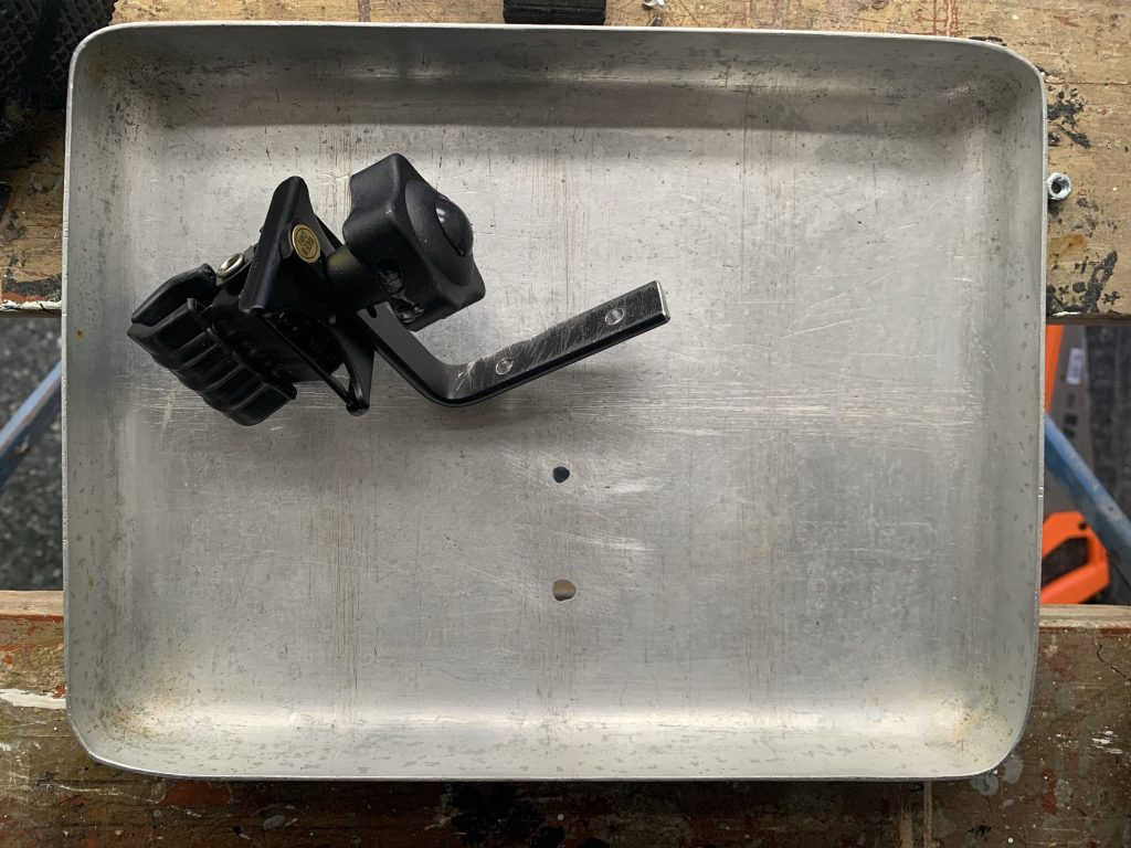 The ingredients for this concoction were a ukele clamp (bear with me on this one), an old aluminium catering tray and a few nuts, bolts and washers. Here’s my step-by-step recipe: