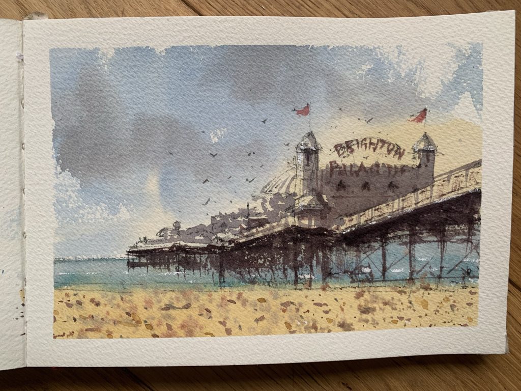 Last Saturday saw the July meet up of the Brighton Painting Group. The location was Brighton’s iconic Palace Pier which, apparently, is the UK’s most popular tourist attraction outside of London.