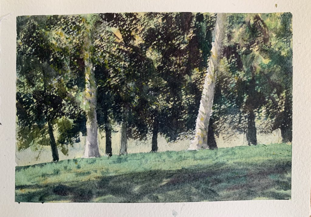 This is another addition to a series of sketches and studies that I now have of trees in my local park. Again, it’s another common dog walking route and I love how the light can sometimes illuminate a single tree, and that this changes almost every time I visit.