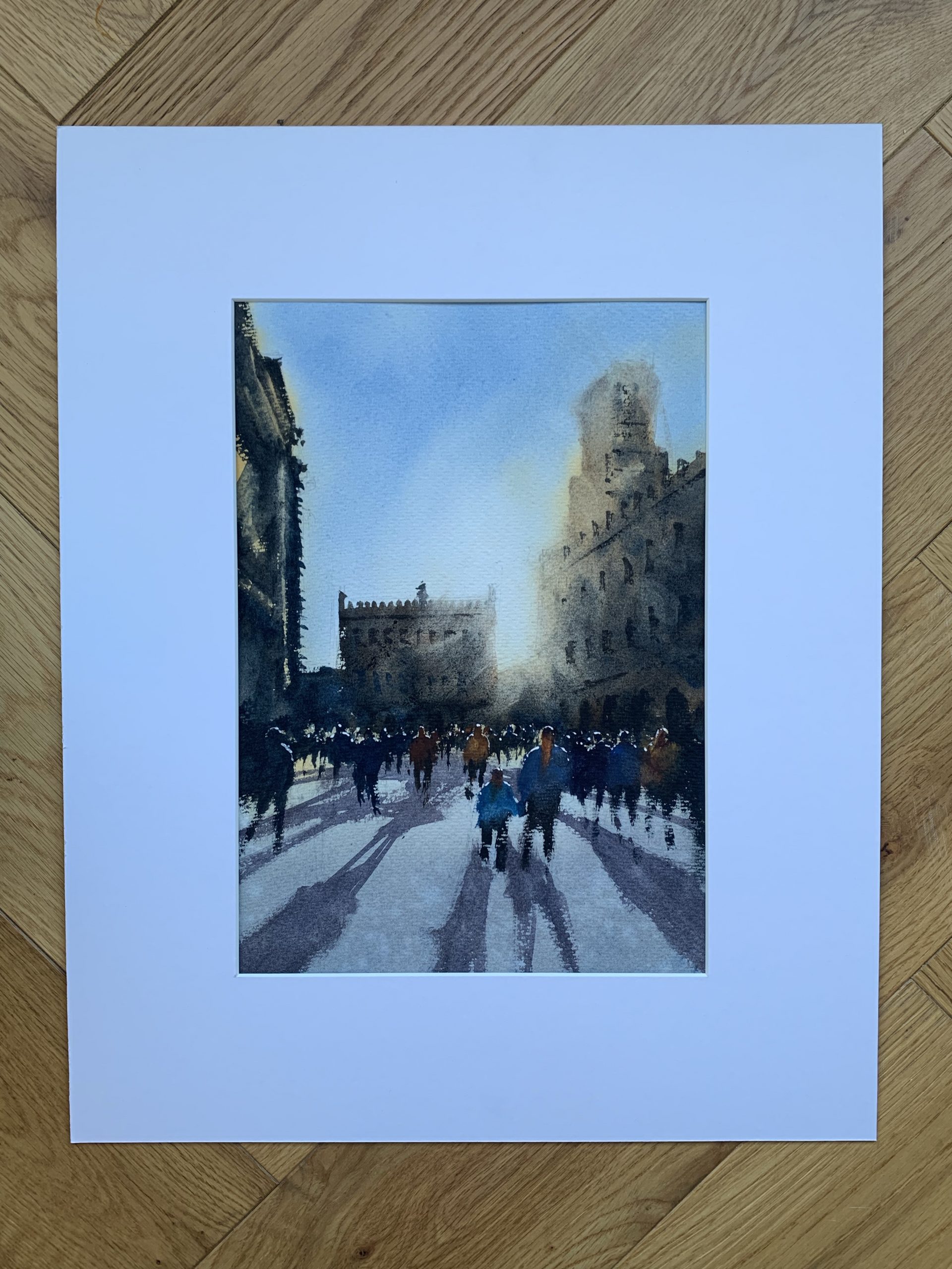 Free international delivery – paintings up to A4 when mounted, supplied with a white conservation grade mount. All larger paintings supplied unmounted and loosely rolled in a protective tube.