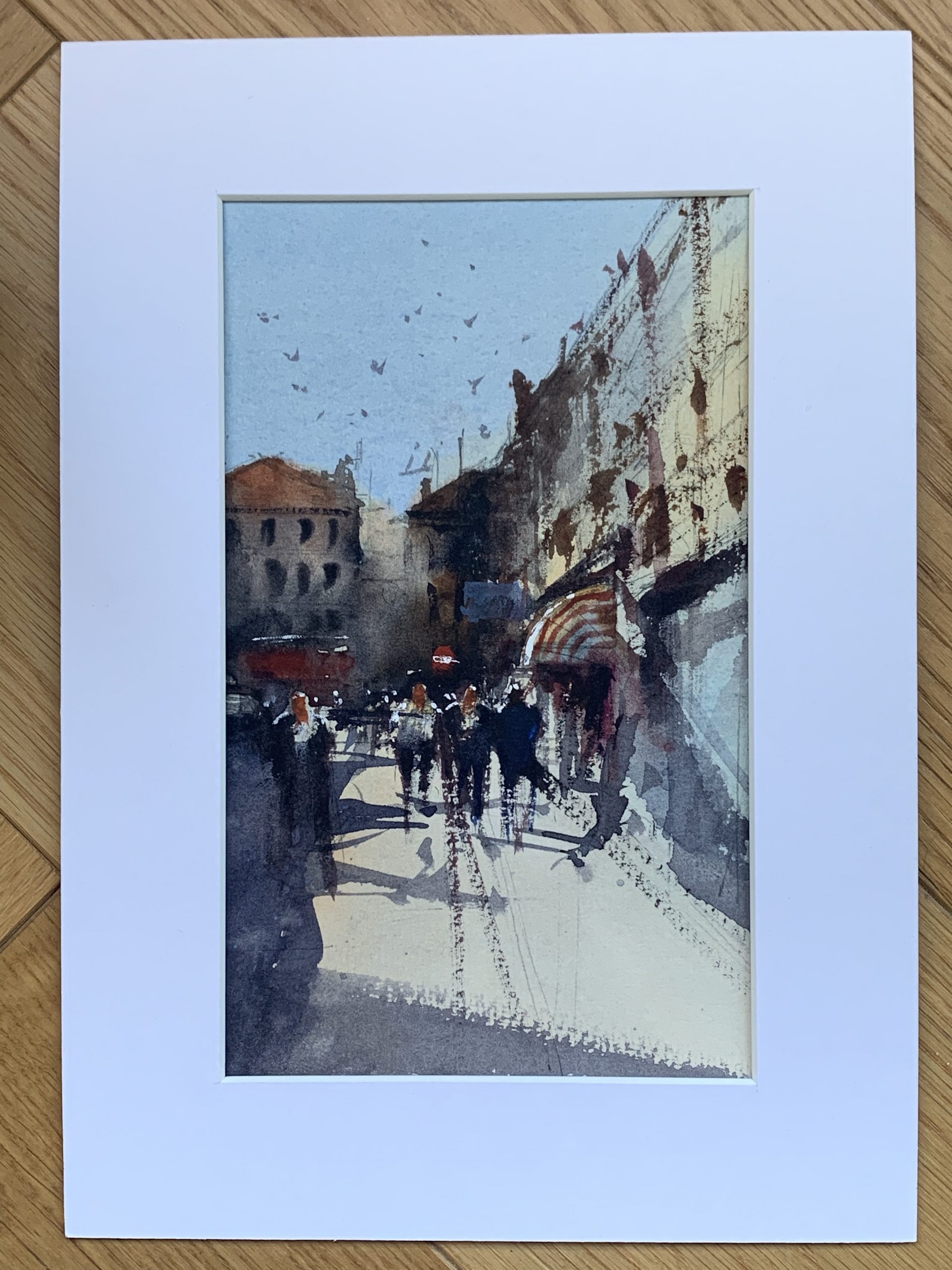 Free international delivery – paintings up to A4 when mounted, supplied with a white conservation grade mount. All larger paintings supplied unmounted and loosely rolled in a protective tube.