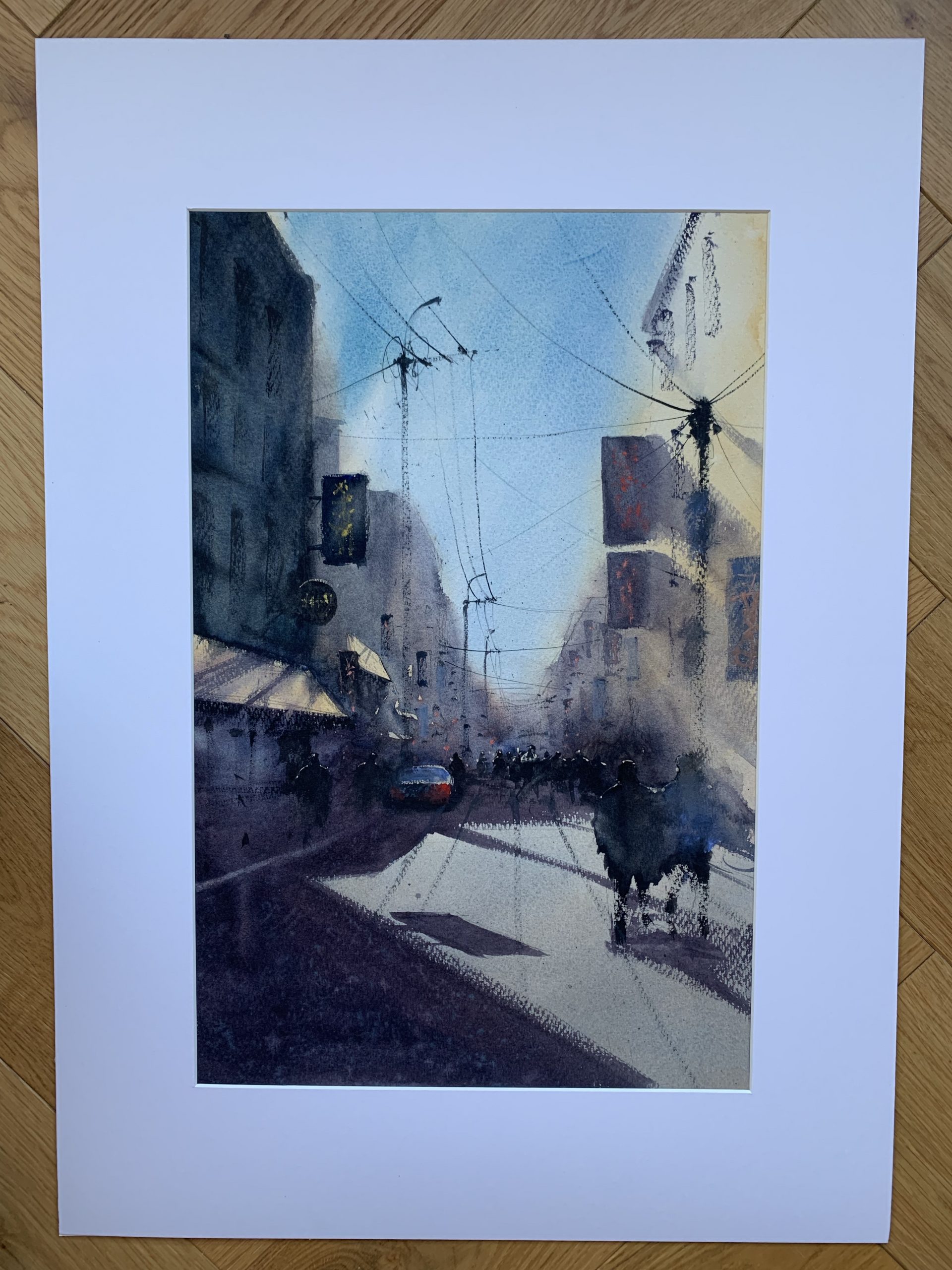 Free UK delivery – all paintings supplied with a white conservation grade mount cut to fit standard sized frames.