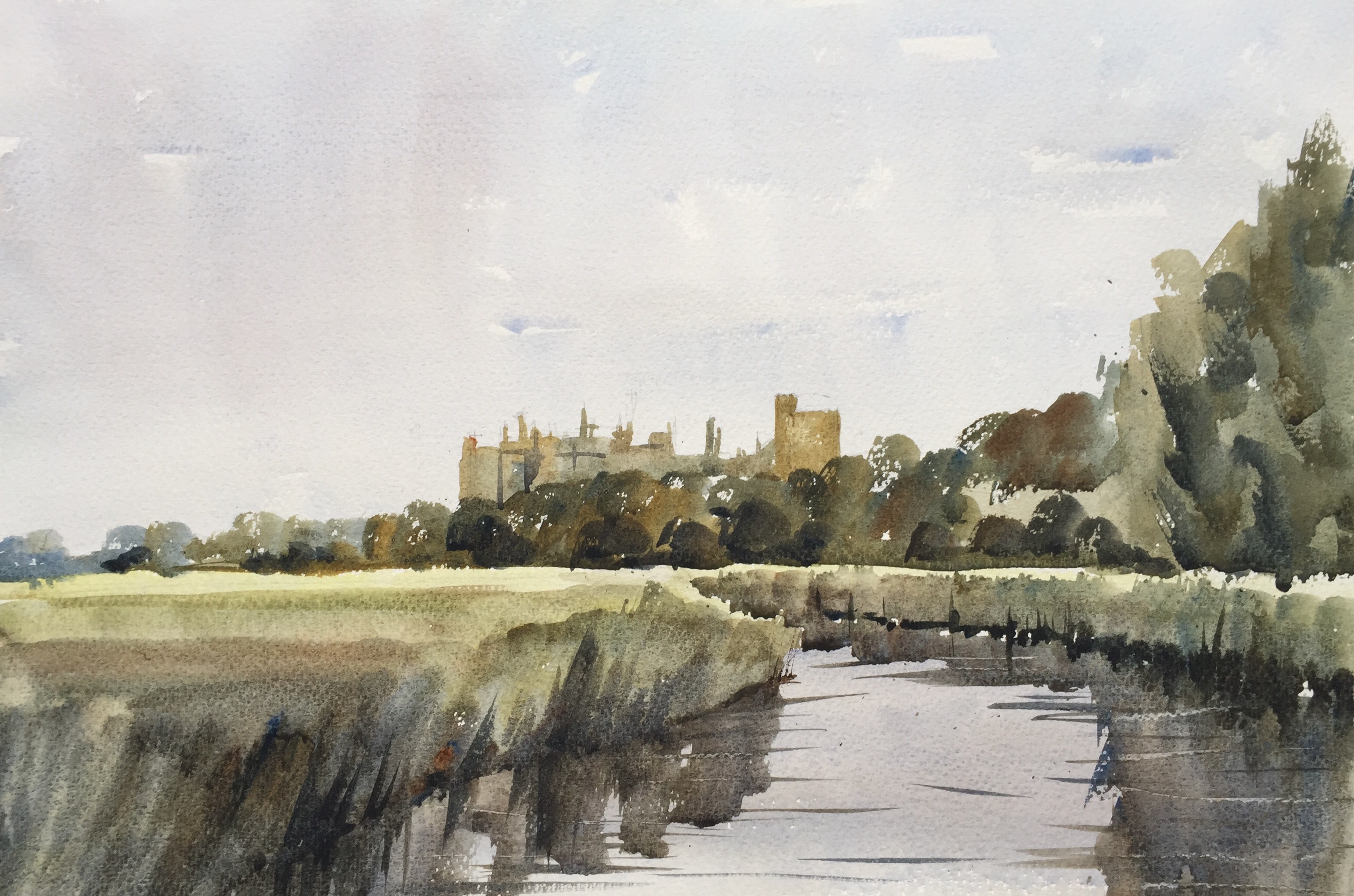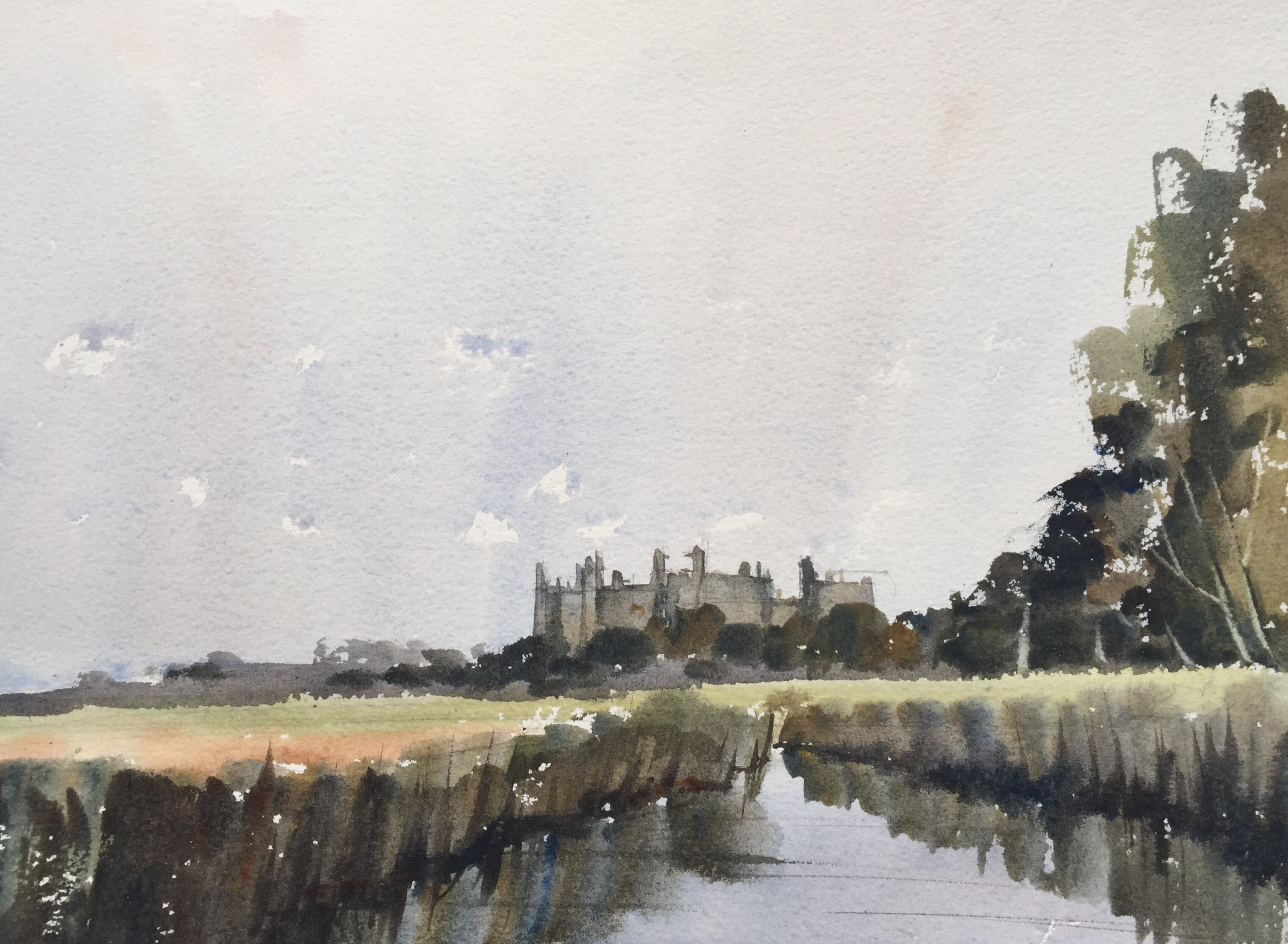 I think both of my ‘At home’ efforts are ‘cleaner’ and livelier in colour, which is something that I was definitely aiming for. I’m not really pleased with the castle in any of these, and don’t think that I’ve really managed to improve my first on location effort. I also feel that the portrayal of the tops of the reeds is much more successful on my later attempts but could still be improved upon.