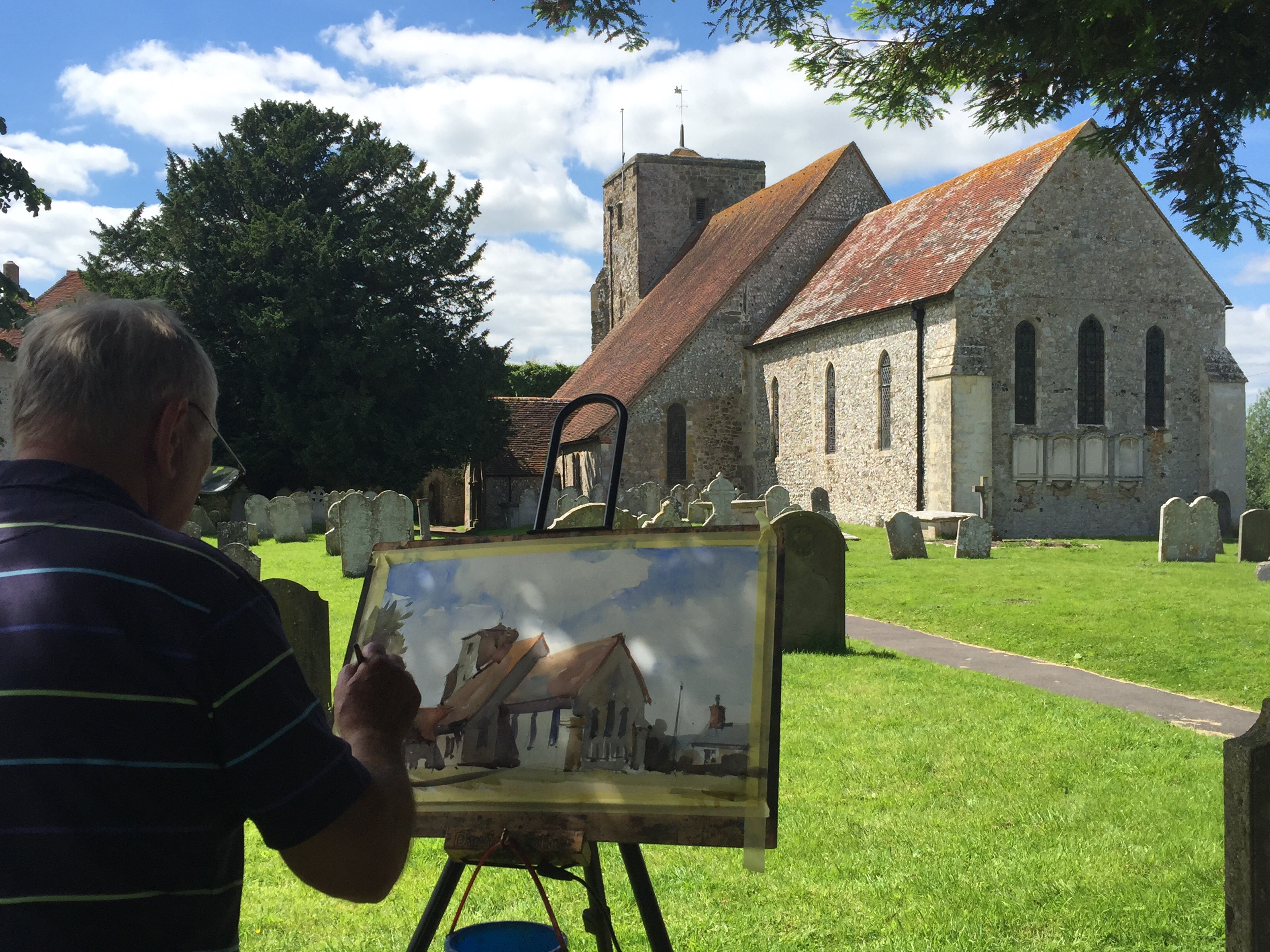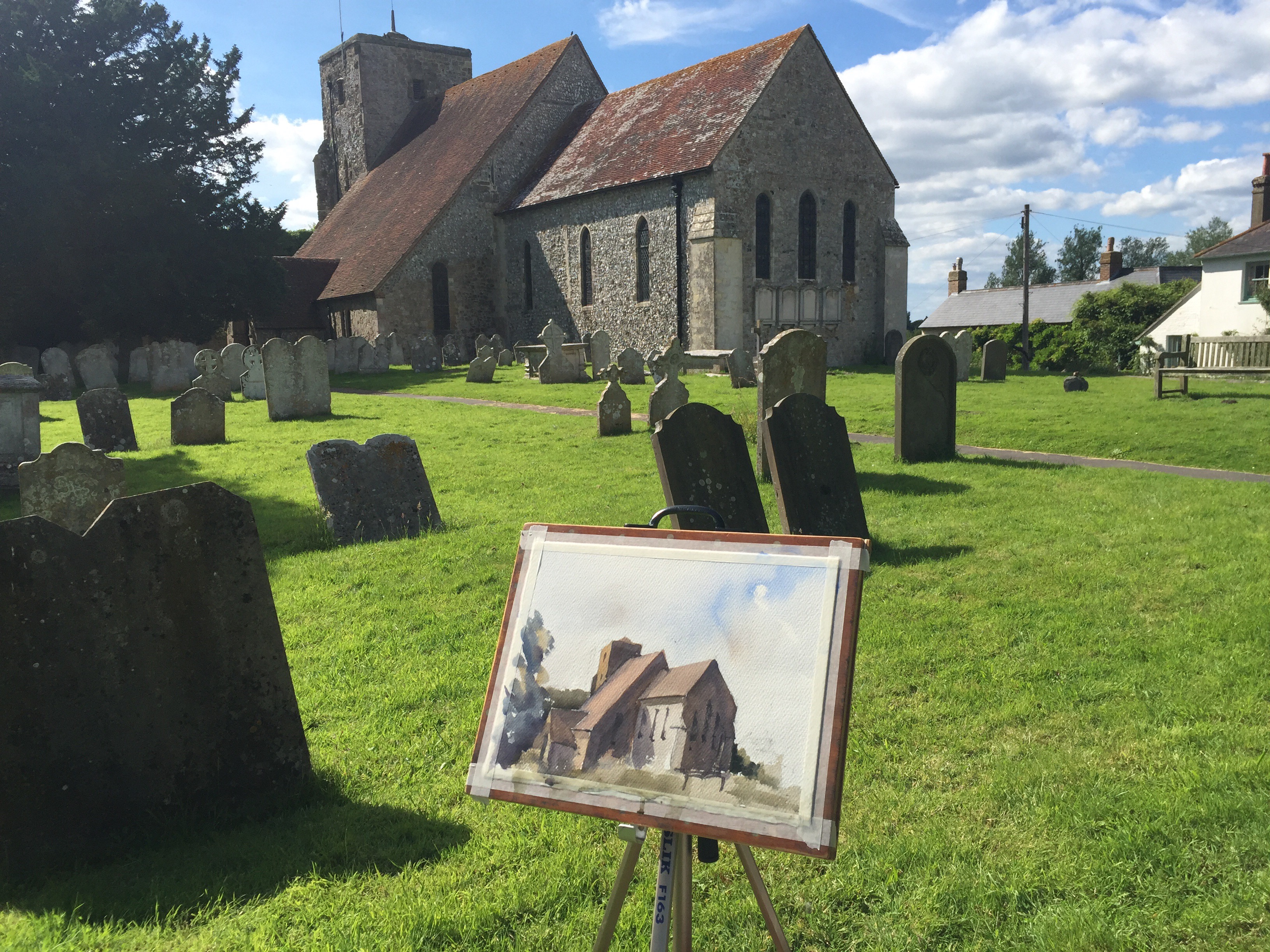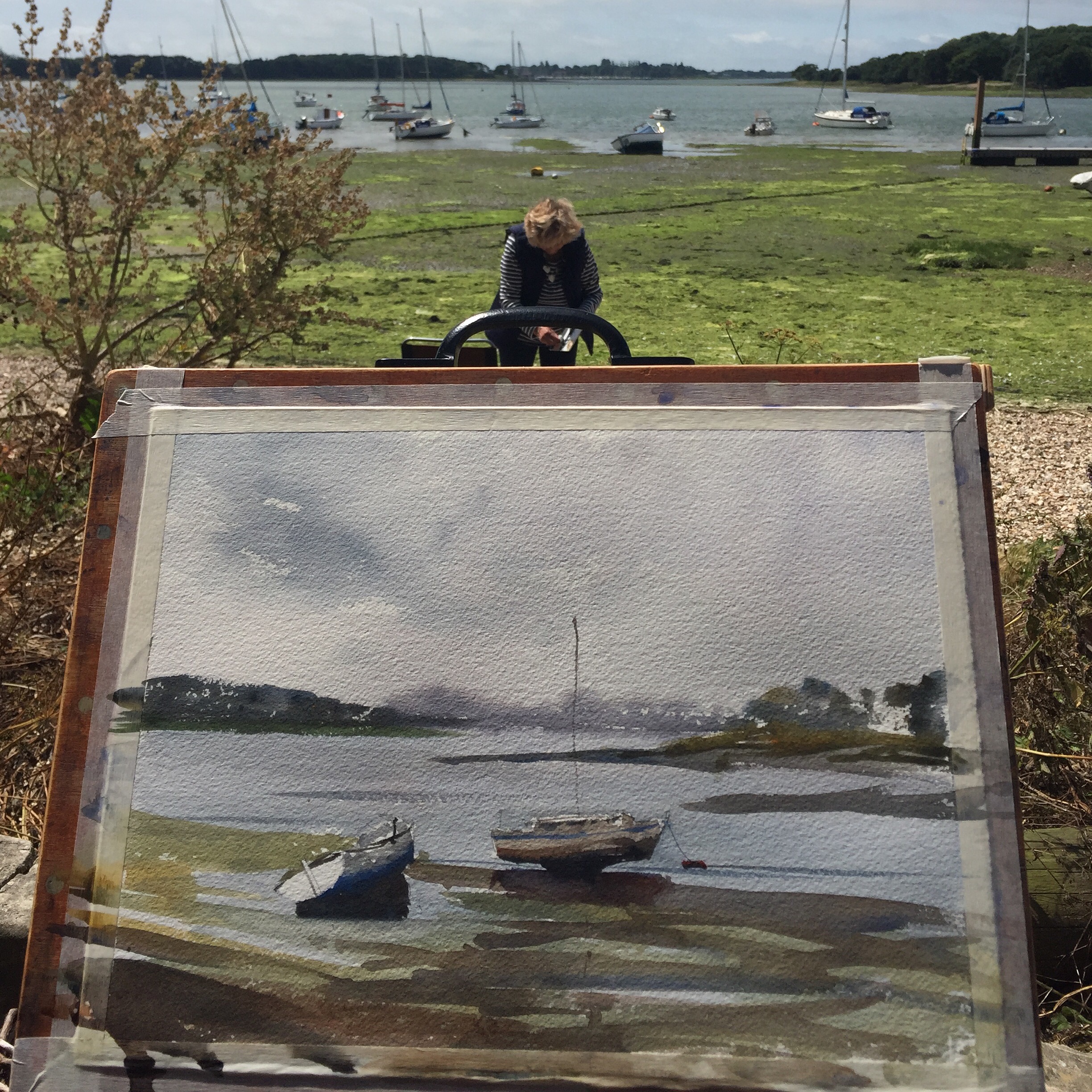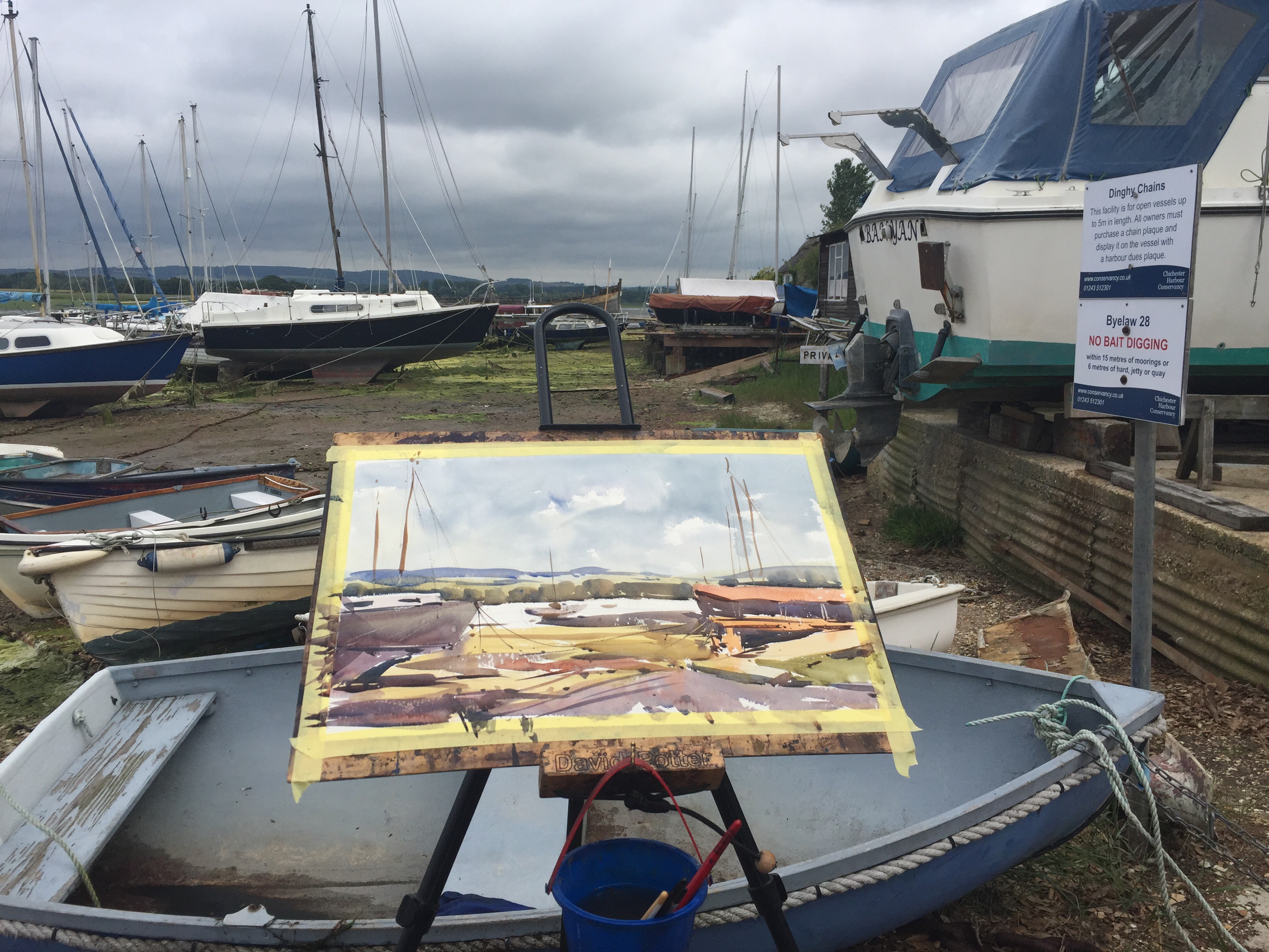 Well, after six month’s of mounting anticipation and fevered practicing – my week of painting with artist and Edward Wesson expert Steve Hall finally arrived. My first ever course of this kind, I was excited and apprehensive. And now, looking back, I’m finding it difficult to condense the experience into a single post. What I would like to say though is that the course, and the experience of painting solidly for four days was absolutely brilliant. After weeks of rain, and my expectation that most of our week would be cancelled due to adverse conditions, we were blessed with four days of clement weather. I met some fabulous fellow painters and greatly enjoyed and benefited from seeing a professional artist at work and have him offer his personal opinions on my efforts and advice so that I might improve.