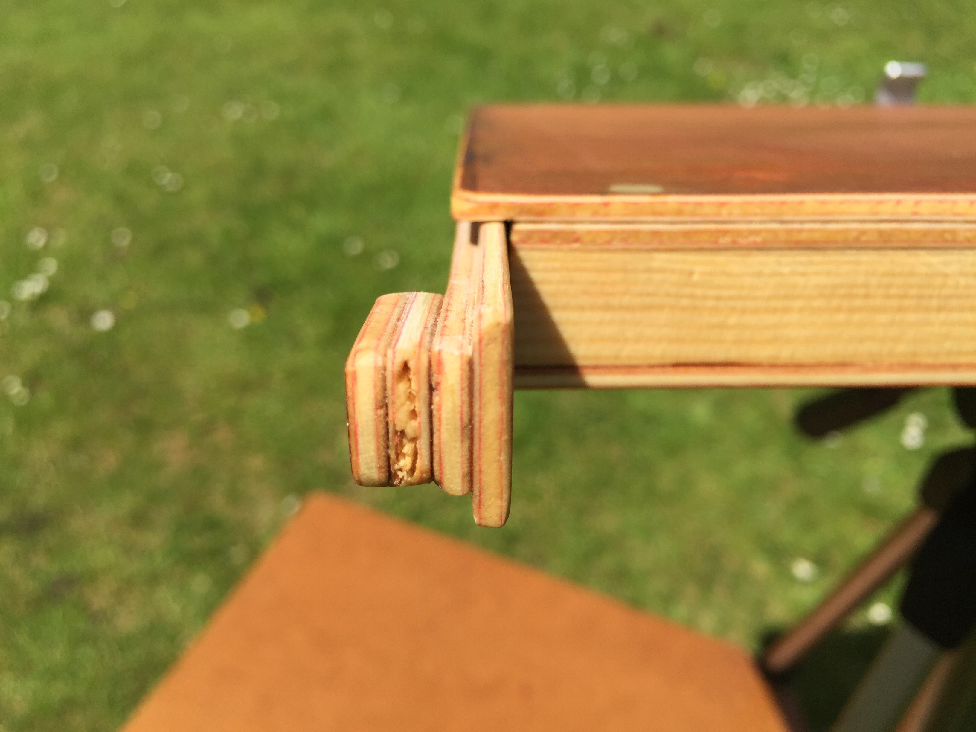 a small sheet of 6mm ply (enough to do 3 pieces approx 425mm 335mm) – (if in doubt I’d err slightly on side of caution and go a fraction larger, only means you’ll have a bit more room for your paper to move around), wood baton (24mm x 15mm baton, about 1110mm long), wood glue/pva, screws, screwdriver, woodfiller, sanding paper, Ken Bromley’s camera tripod mount, Danish oil or similar, some patience, and a healthy number of expletives for when any of it goes wrong.