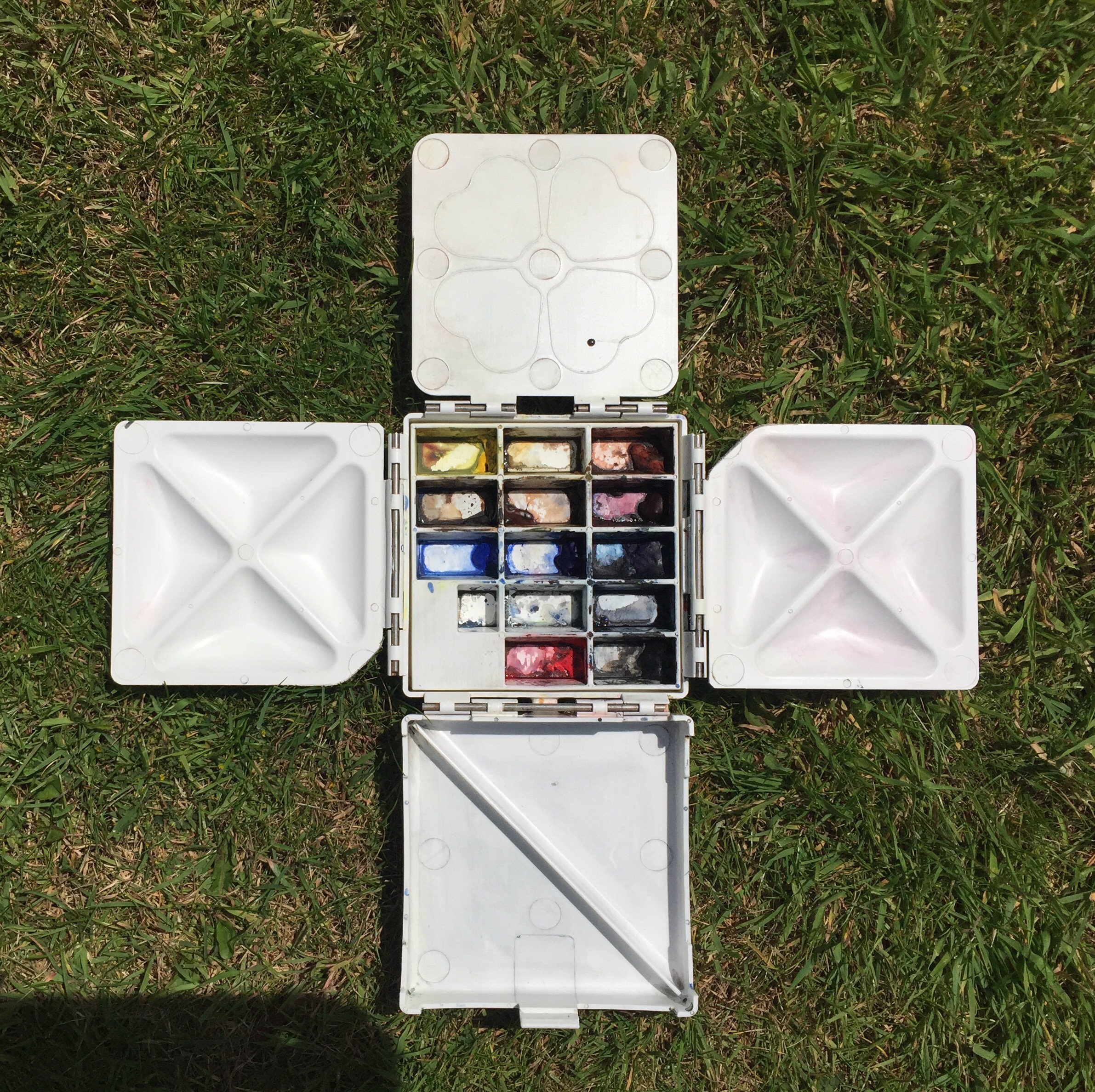 As I was photographing the board, and the sun was shining, it also seemed opportune to photograph the rest of my plein air kit: