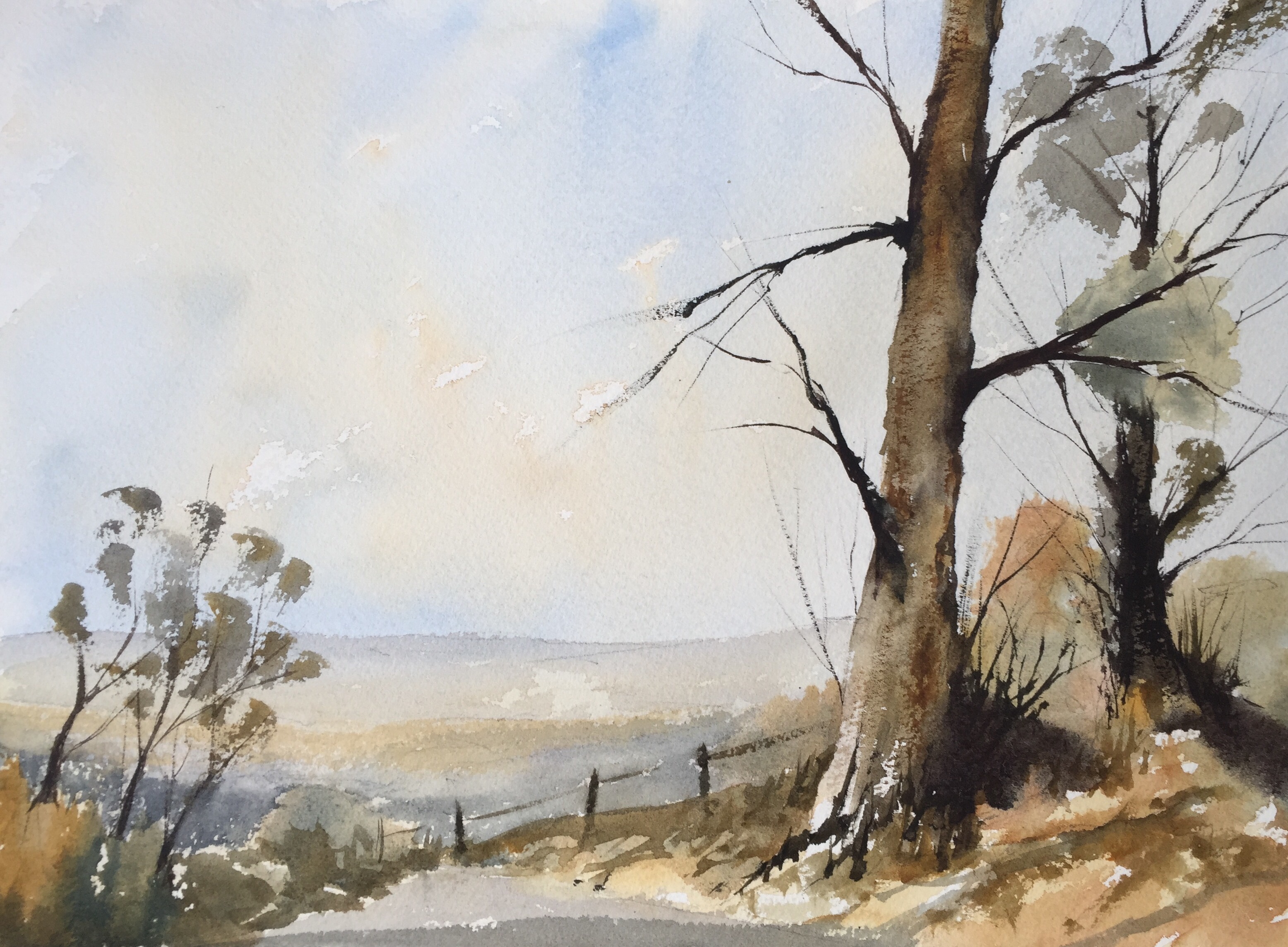 Thanks Sand Salt Moon – really pleased you like this. If I remember correctly the sky features cobalt blue and the yellow/orange is mainly raw sienna with a touch of winsor red. I loosely applied a wash of clean water, then dropped in the orange, then, while everything was still wet, the cobalt blue – all very thin/diluted mixes. Always a bit of a lottery but I love the potential and high stakes of the direct approach! Thanks again