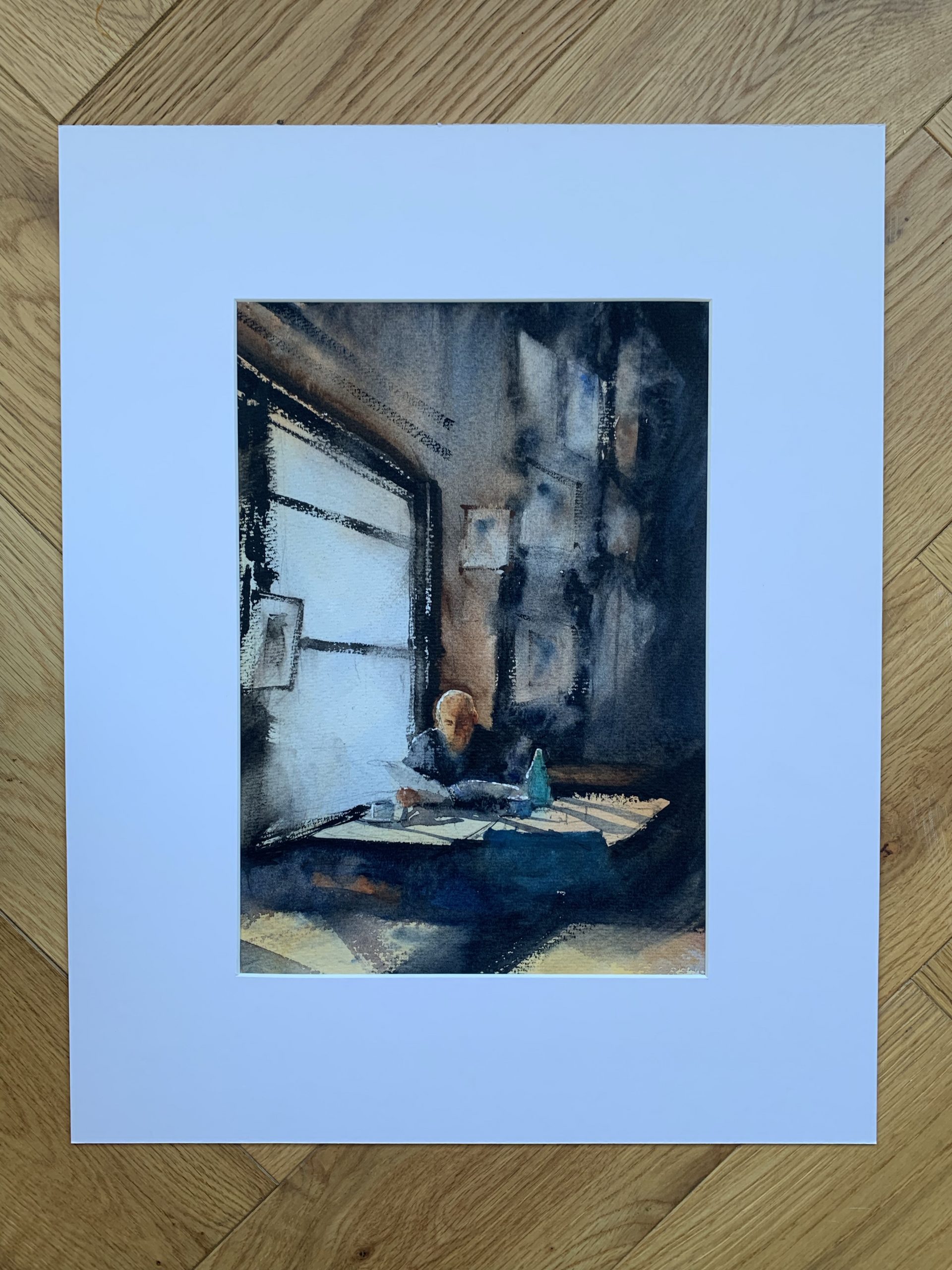 Free international delivery – paintings up to A4 when mounted, supplied with a white conservation grade mount. All larger paintings supplied unmounted and loosely rolled in a protective tube.