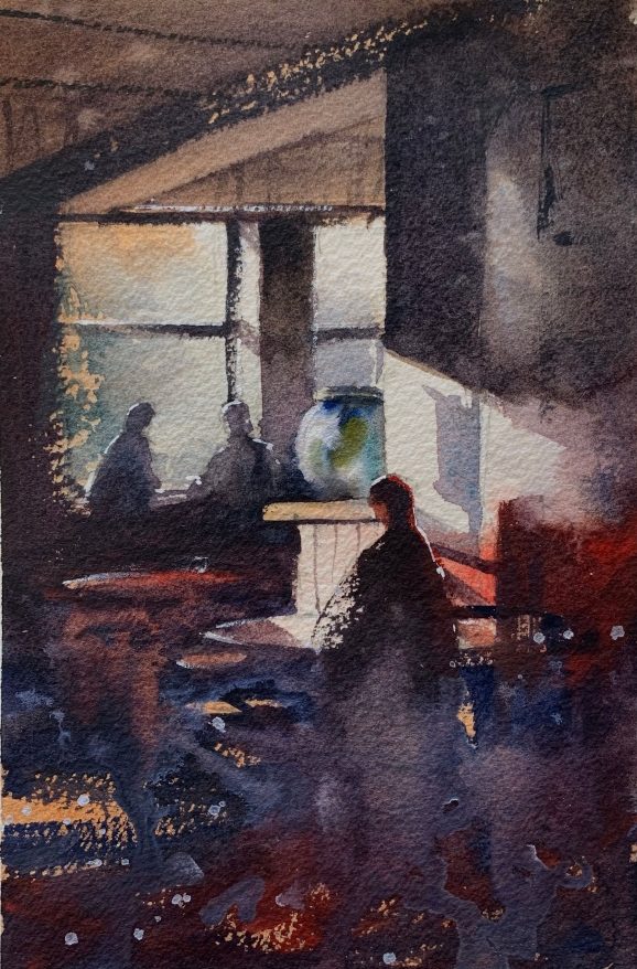 Free international delivery – paintings up to A4 when mounted, supplied with a white conservation grade mount. All larger paintings supplied unmounted and loosely rolled in a protective tube.