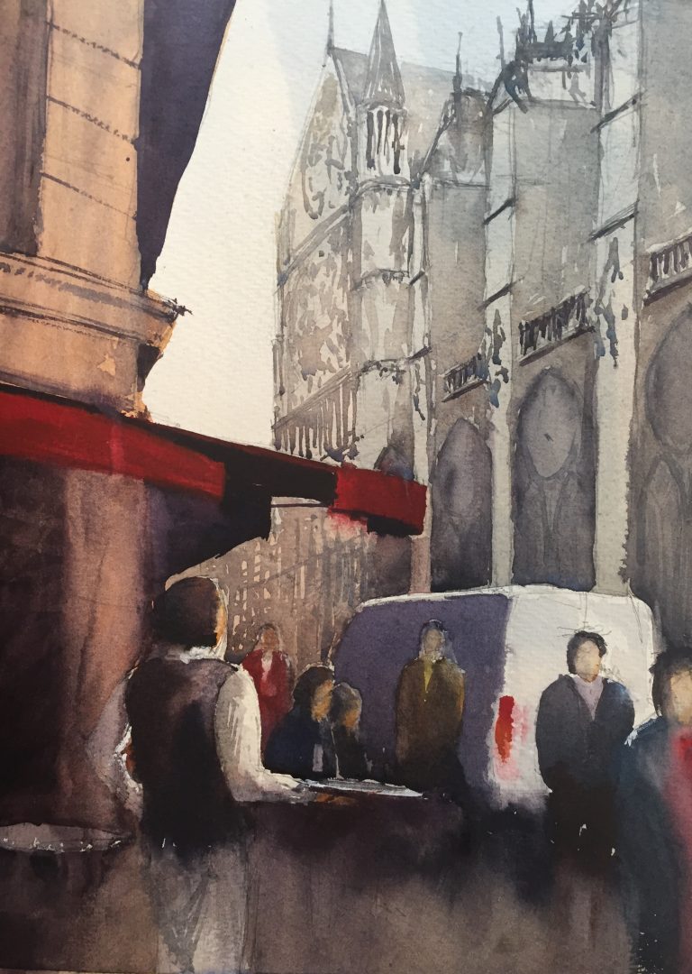 I left last week’s post broadly satisfied with my sketch of a Notre-Dame side street, although slightly bemoaning that I didn’t think that the sky