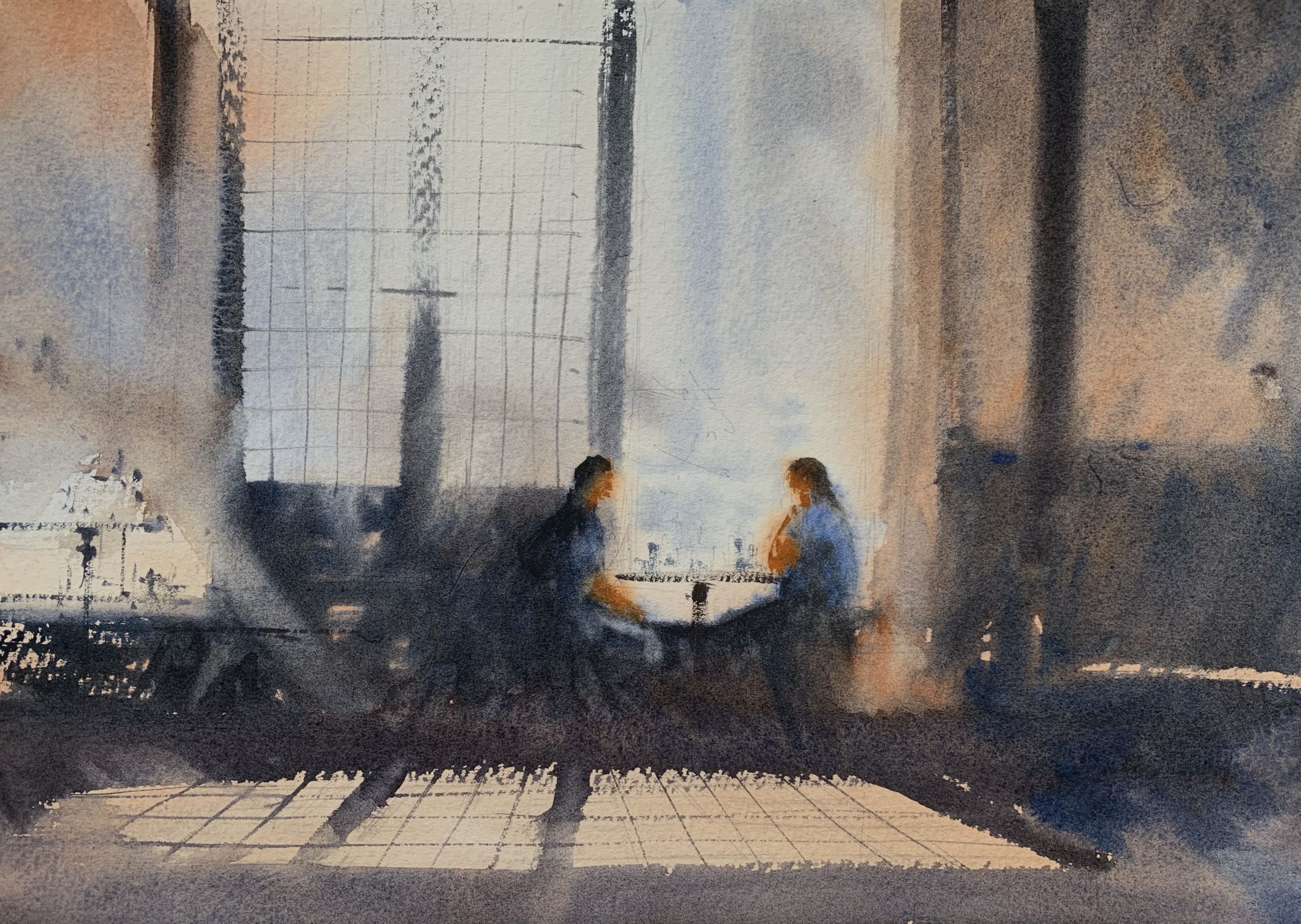 This is one of those views where I really wanted to be part of the scene. I wanted to be one of the people at the table, enjoying a coffee with a friend while that morning light streamed in through the windows casting wonderful shadows.