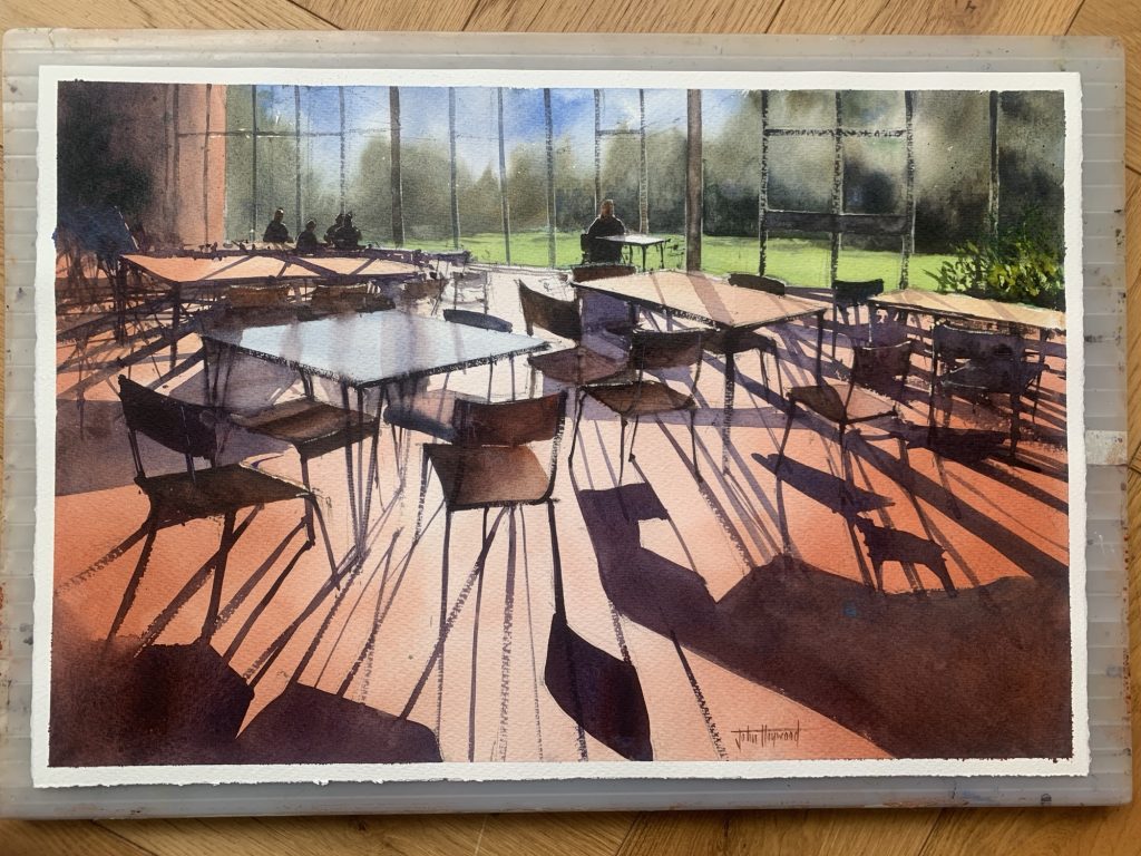 As a painting, I’m not sure that it stands up to the closest scrutiny, for a lot of reasons, but I think that it does capture that sense of light and scattering shadows that I really associate with this space.