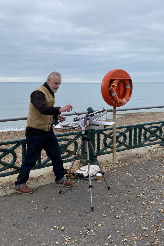 This is me painting on Brighton seafront on a cold day back in 2023 I think. I know that this means it’s not totally up to date, but it’s a lot more true to my current likeness than my previous image!