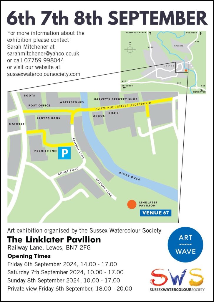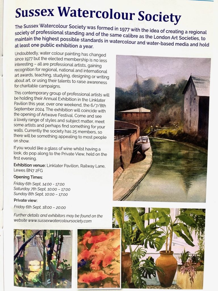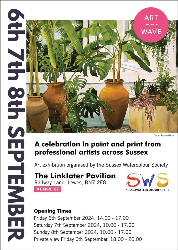 The annual Sussex Watercolour Society exhibition takes place this weekend at the Linklater Pavilion in Lewes, East Sussex. It will be open from 2-5pm on Friday 6th September (with a Private View from 6-8pm) then from 10am-5pm on Saturday 7th and Sunday 8th September.